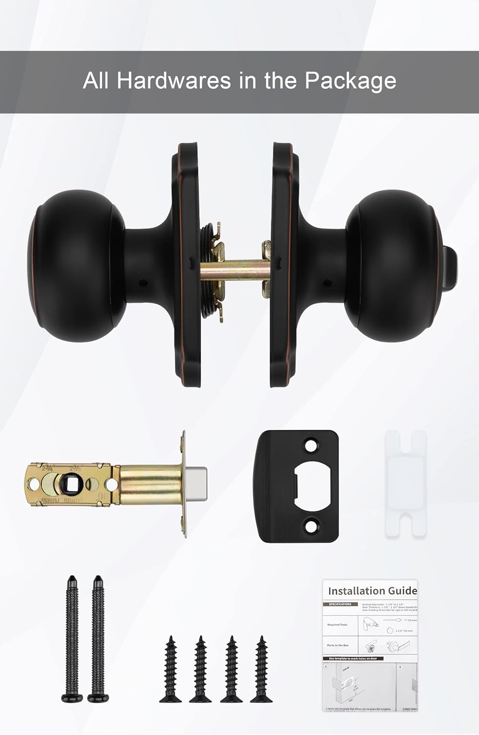 | Included Components | Adjustable Latch, D shape Strike Plate, Installation Hardware, Long and Short Screws, Oil Rubbed Bronze Door Knob |