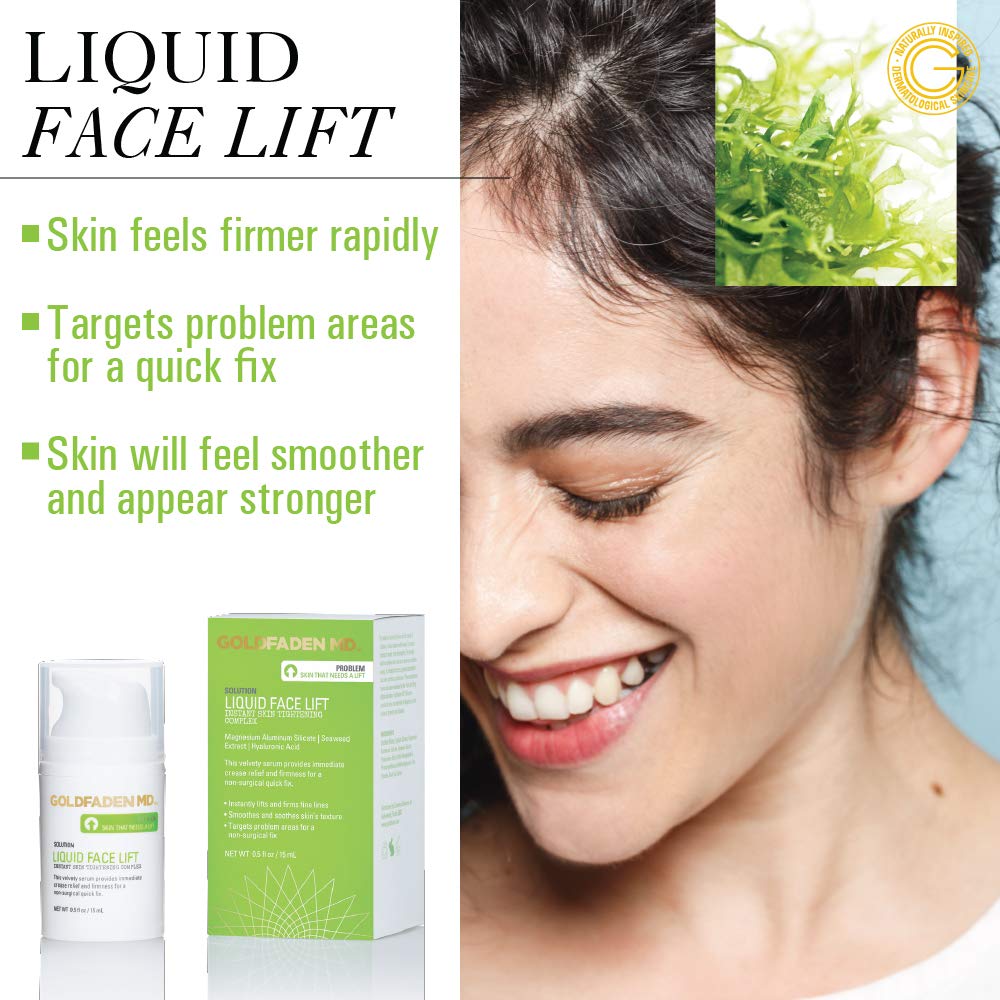 Product Description GOLDFADEN MD Liquid Face Lift Rapidly Improve Feel of Skin Smoother Stronger and Firm 0.5 fl. oz. The Story of GOLDFADEN MD Plant powered, dermatologist developed, radiant results. Developed to mimic the radiant effects of the coveted in-office dermatologist procedures performed by Dr. Goldfaden by using natural, clean ingredients powered by plants.