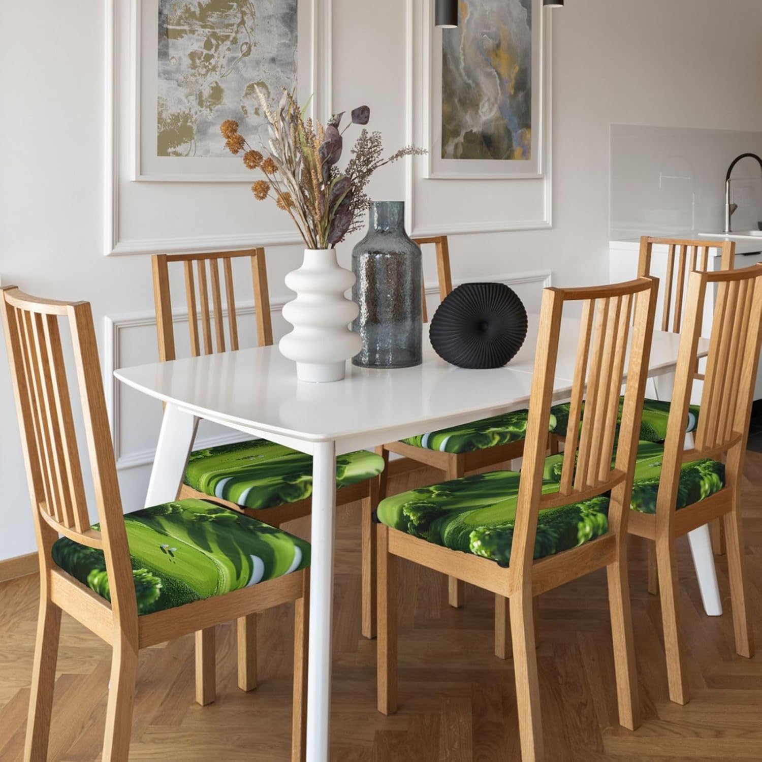 Our 6 Pcs set of square chair cushion covers are a wonderful addition to any seating area. Made of milk silk (94% polyester and 6% spandex), they offer a great combination of elasticity and comfort. With the unique design of elastic bands and 4 tie - straps (approx. 40cm each), these covers can be quickly installed on square chairs with sizes ranging from length and width of 35 - 48cm and thickness of 2.5 - 6cm. They are perfect for protecting your chairs from kids' doodles and pets' damage while enhancing the overall look of old chairs. These cushion covers can be used in various places such as offices, homes, cars, and wheelchairs, as well as for events like hotel functions, weddings, dinners, conferences, and family celebrations. What's more, they are easy to clean either by hand or gentle machine wash, ensuring they stay fresh all year round. They are also an ideal gift for your loved and colleagues.
