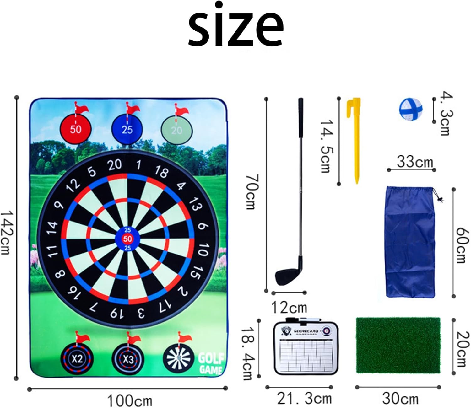 Set Include: 1 Set Golf Chipping Game Condition: New with tags Material: 70% Polyester, 20% Plastic, 10% Metal -Tag No.---|---Recommended Size---|--------A Game Mat--------|---------B Game Mat--------|----------Club----------|-------Hitting Mat--- One Size---|-------One Size-------|---29.5x69.3''/75x176cm---|---39.4x55.9''/100x142cm---|---27.6x4.7''/70x12cm---|---11.8x7.9''/30x20cm