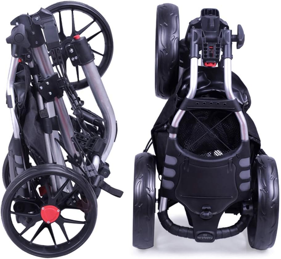 Golf carts, ideal golf accessories for men and women. Suitable for golf carts, golf cart accessories and men's and women's golf clubs, this foldable golf cart is also equipped with a ball wheel, which can run smoothly on any terrain. Just gently pull to engage and release.Weight: 10kgWheel material: rubberBody material: aluminum alloy