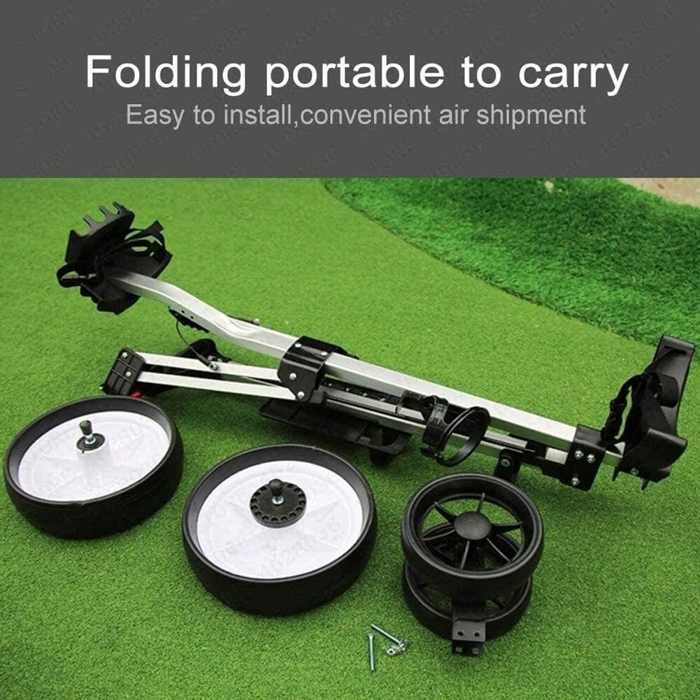 Golf carts, ideal golf accessories for men and women. Suitable for golf carts, golf cart accessories and men's and women's golf clubs, this foldable golf cart is also equipped with a ball wheel, which can run smoothly on any terrain. Just gently pull to engage and release.Product FeatureColor of golf cart: silverMaterial of golf cart: Steel Frame +PP with EVA cover WheelsPacking Include:1 x Golf Cart
