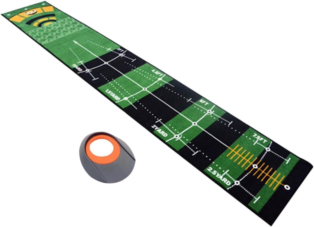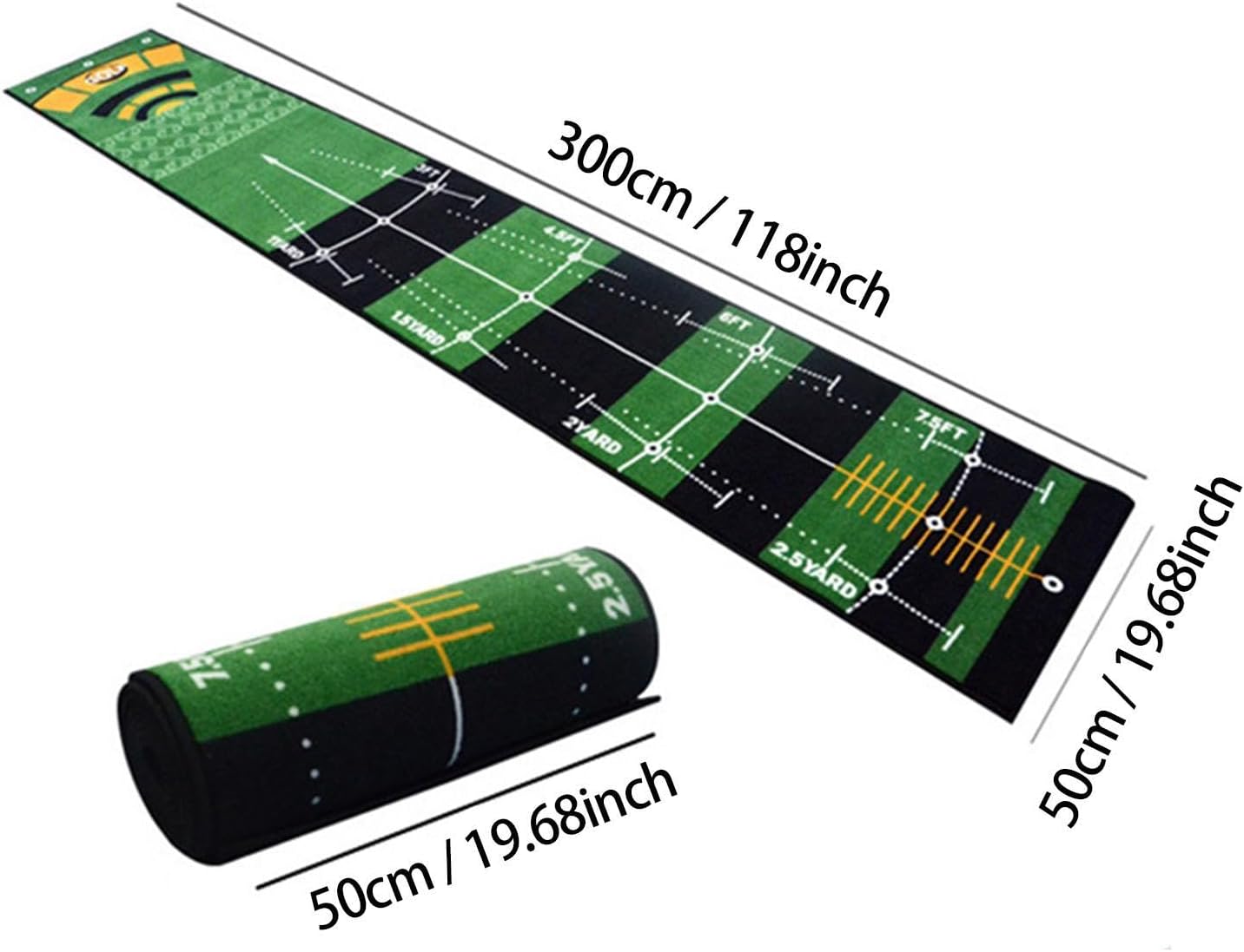 Description: - [Golf Putting Green]: Golf putting mat dedicated for golf course, it simulates real green speed and real holes cup, suitable for beginners teaching. - [Premium Material]: The golf practice putting mat is made of polyester and nylon material, elastic, comfortable, soft, wear resistant, and is not easy to deform, beautiful and good workmanship, more generous, and more . - [Portable Practice Mat]: Improve your golf skill anytime and anywhere. you can open it and start practicing anytime and anywhere. push rod scale line even for a long term use is still clear. - [Lightweight and Portable]: Golf putter is easy to fold and store, the putting mat is easy to clean can play at home, office, indoor, outdoor, backyard, garden, lawn, park, or anywhere. - [Golf Gift]: Good for single training, putting experience, and exercise for different levels Good gift for the men, women or kids They will love playing with it and help them improve their putting skill.Specification: - Material: Polyester NylonSize Chart:300cmx50cm/118.11inchx19.69inchPackage Includes:1 Golf Putting MatNote:Please allow slightly errors 1-2cm differences due to manual measurement.