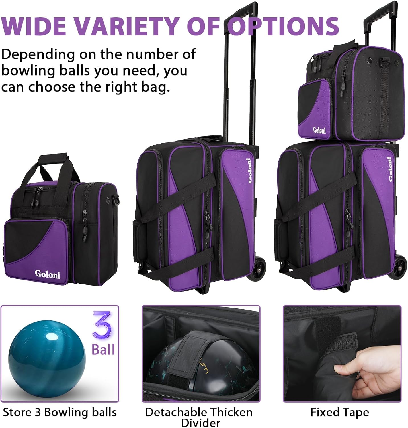 | Model Number | 23055C+25077-2+1 Ball Bowling Bag-Purple |