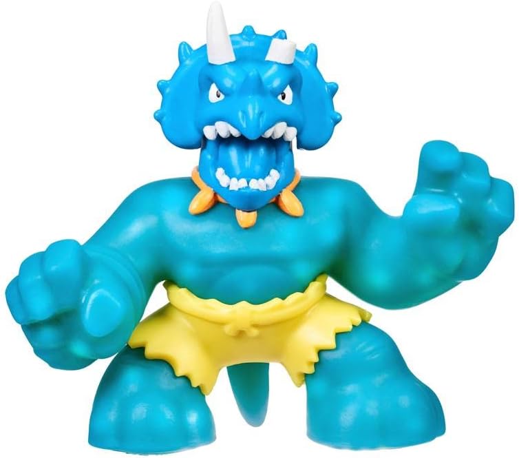 Features 3 Exlusive Goo Jit Zu Dino Power Characters to add to your collection. Tyro "I'm Super Squishy" is pumped up and ready to unleash a Jurassic attack, Tyro leads by his actions, not his word! This T-Rex has the flex that wrecks his opponents! Verapz "I'm Super Stretchy is fast, furious and flexible, nobody can hold down Verapz. This dynamic dino strikes like clawed lightning to defeat his opponents before they know it! Tritops "I'm Super Gooey" Nothing beats the sheer brute strength of Tritops! And when he uses his head to launch an attack, it's "GAME OVER!"= THREE SPIKES AND YOU"RE OUT!