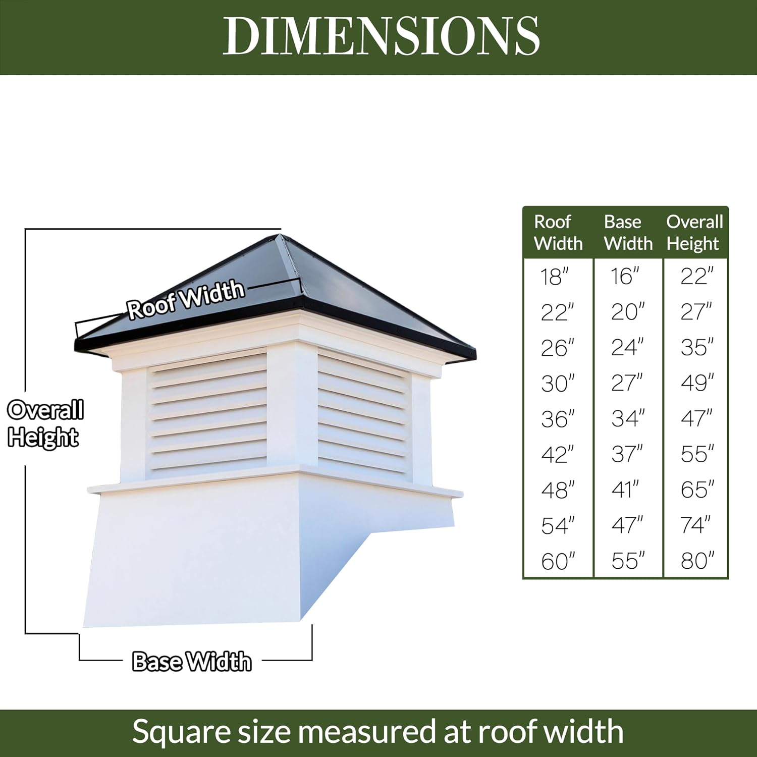 Since 1982, Good Directions cupolas have been the perfect complement to your home, garage, shed, barn, gazebo, pool house, carriage house, horse barn, or pavilion. Our expertly crafted, made to order, Manchester louvered cupola, features roof molding and reinforced interior supports for added strength. The preinstalled mesh screening keeps unwanted pests and bugs from entering the cupola. It's made to order in the USA from durable, maintenance–free Royal Brand PVC–vinyl, constructed with precision using a CNC Router for accuracy and a lifetime of enjoyment. The Manchester features a 16–ounce, 24 gauge black aluminum roof, hip style roof that adds an architectural element of beauty and lasting value to your home. Our cupolas arrive in 3 sections for easy installation, includes assembly hardware and easy–to–follow detailed installation instructions, and are weathervane ready with a built–in internal mounting bracket. YouTube videos are also available to walk you through the installation step by step. Good Directions vinyl cupolas have an industry exclusive Lifetime Warranty. For a distinctive finishing touch to your home, add a Good Directions weathervane or finial.