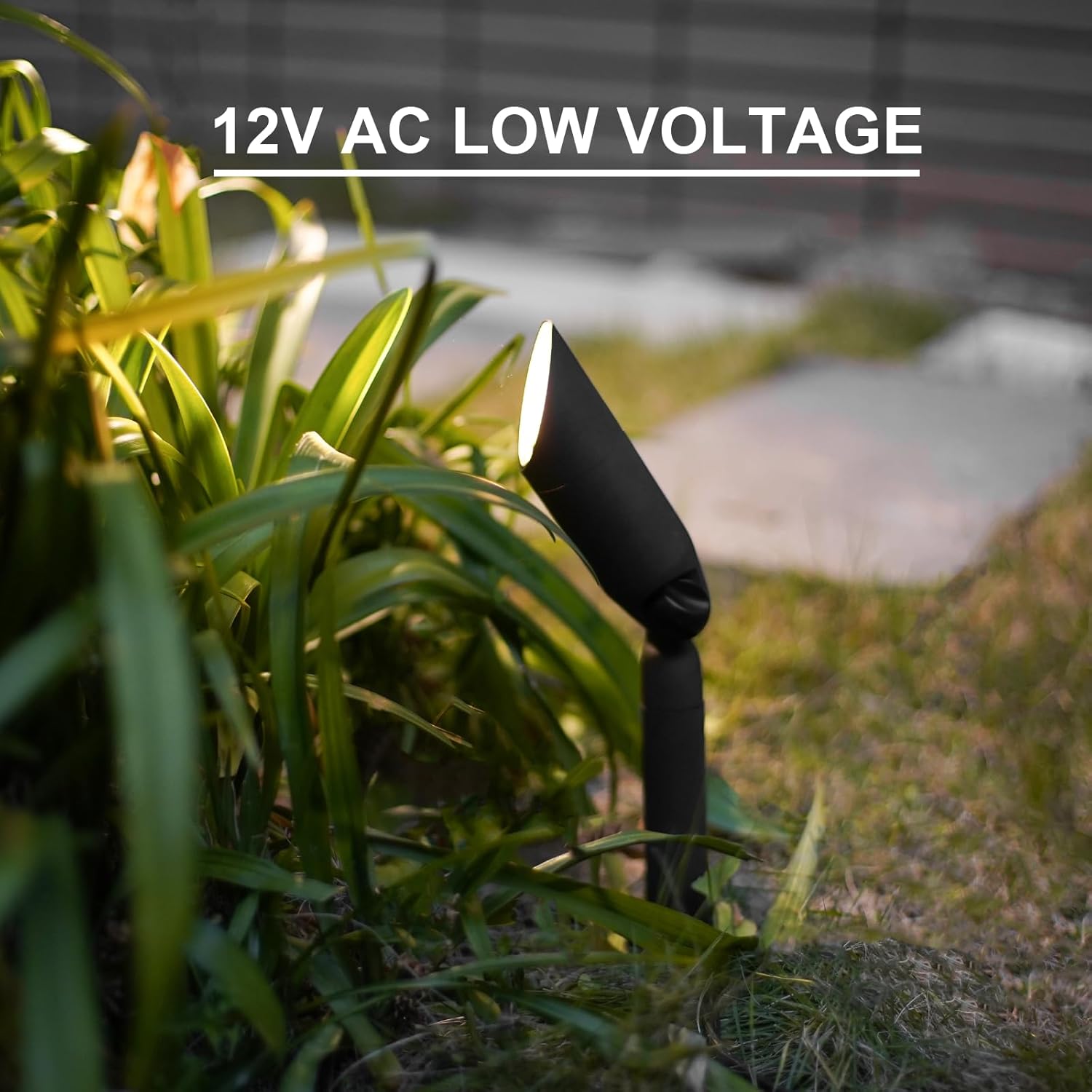 | Included Components | 4PK Low Voltage Spotlights, Attached with Cable Connectors, With Replaceable LED Bulbs, With Replaceable Metal Stakes |