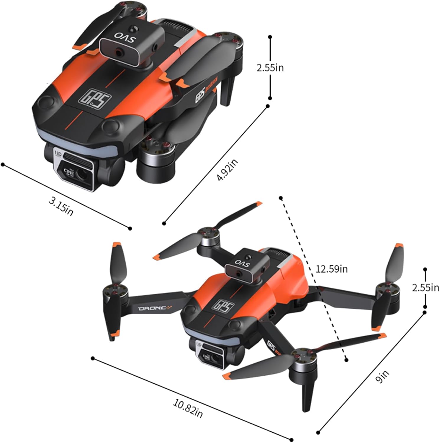 Features: Item Name: RC Drone Main material: plastic, metal. Motor: brushless motor. Drone battery: 3.7V 2000mAh lithium battery Remote control battery: 3.7V 150mAh lithium battery (not included). Charging time: 80-100 minutes (drone), 20-30 minutes (remote control) Endurance time: about 16 to 18 minutes (drone), 72 hours (remote control) Remote control distance: 500 meters Camera: 8K dual camera Front camera: Photo resolution: 7680*4320P; Video resolution: 7680*4320P Bottom Camera: Photo Resolution: 7680 x 4320P; Video Resolution: 7680*4320P Compatible system: Android 5.0 or higher, IOS 9.0 or higher The black color Size: 12.5*8*6.5cm/4.92*3.15*2.55 inches (folded), 32*27.5*6.5cm/12.59*10.82*2.55 inches (unfolded) Package Information: Package size: 22.5 x 8 x 18 cm. Delivery weight: 536 g Package list: 1 x drone. 1 x remote control. Lithium battery 1*3.7V 2000mAh 8 x replacement blades. 1 x USB charging cable. 1 x screwdriver. 1 x storage bag. 2 x user manual