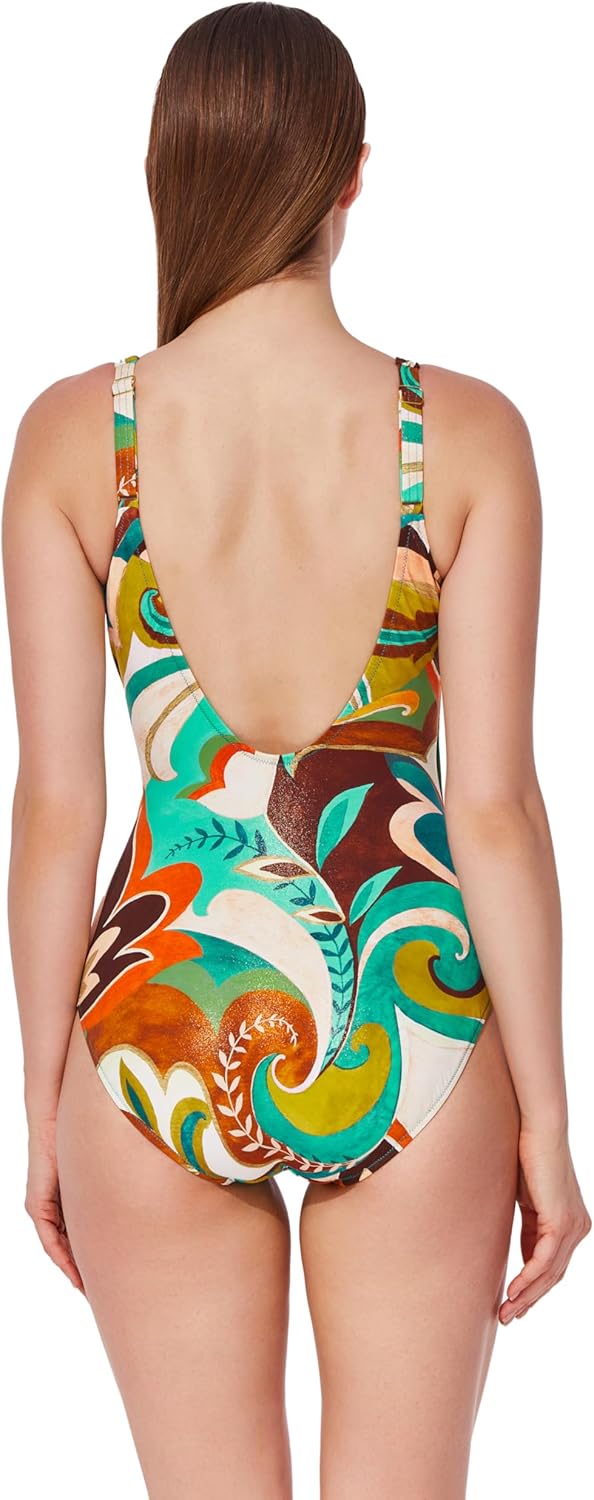 Gottex Surplice One Piece - U Wire Insert, Built-in Soft Cups, Tummy Control, Adjustable Straps, Front and Back Lining
