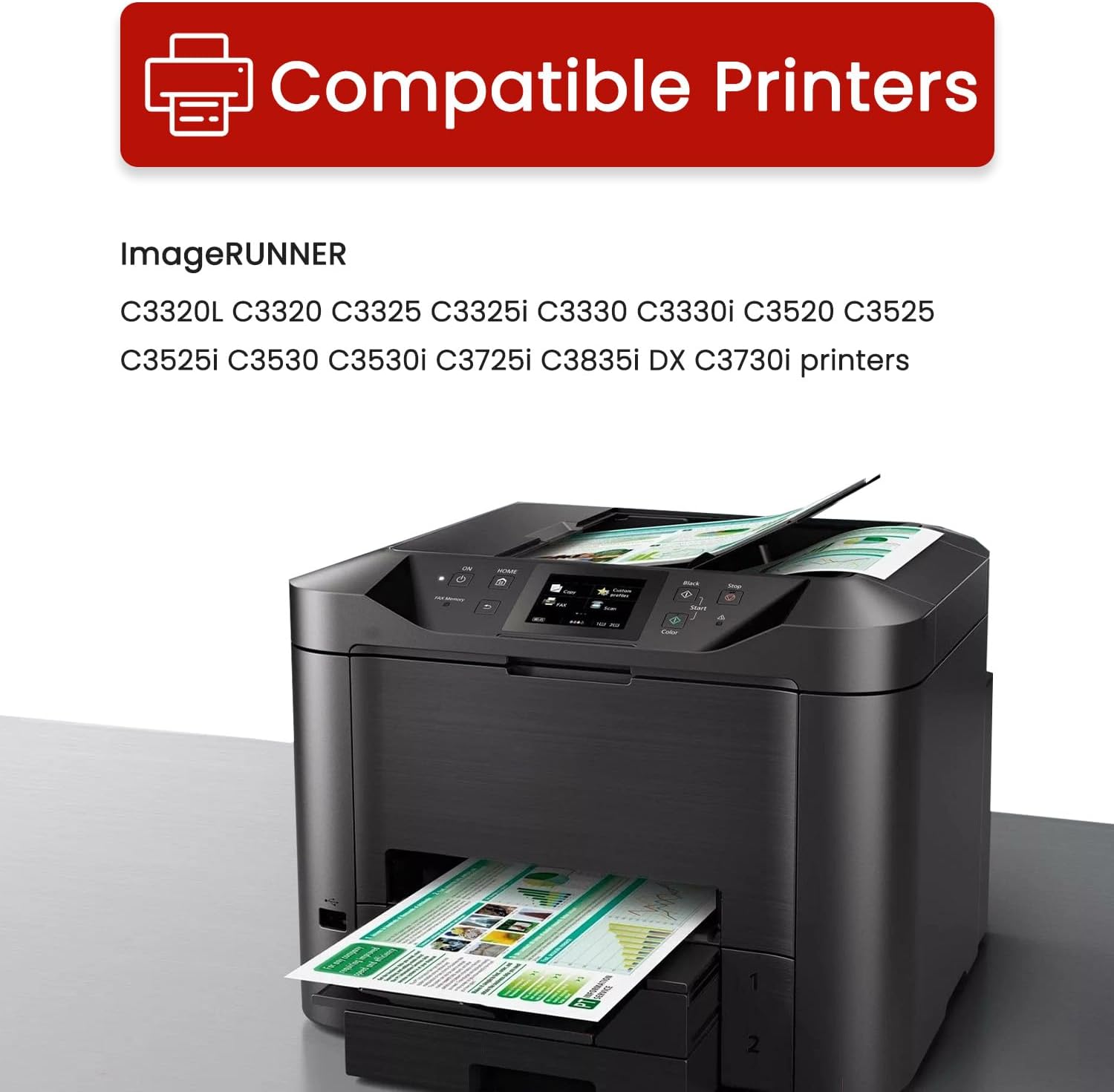 | Compatible Devices | Compatible for Canon ImageRunner Advance C3320L C3320 C3325 C3325i C3330 C3330i C3520 C3525 C3525i C3530 C3530i C3725i C3835i DX C3730i printers |