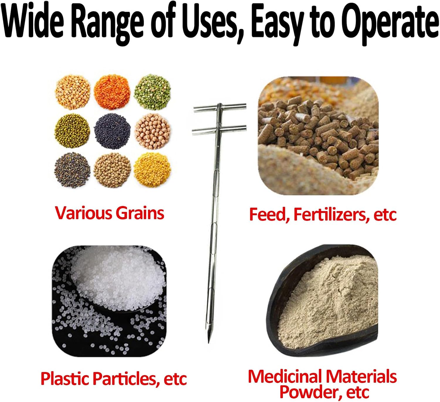 Our grain samplers are designed for efficient collection of powders and granular materials, making them ideal for various applications in laboratories, agricultural settings, and quality control environments. Crafted from robust stainless steel, these samplers ensure long-lasting durability, while their ergonomic tip design facilitates effortless sampling. With a uniform sampling port, you can achieve consistent results every time. Available in two convenient lengths—1m (3.3ft) and 1.5m (4.9ft)—and multiple diameters (Ø19mm, Ø25mm, Ø32mm, and Ø38mm), our samplers cater to diverse needs. Their lightweight and portable design allows for easy transport, ensuring you're always ready to collect samples wherever your work takes you. Using our grain sampler is straightforward: simply insert the tool into the material, turn the handle to open the sampling slot, and collect the sample in the central tube. Afterward, close the slot by turning the handle, remove the sampler, and invert it to discharge your collected sample. For best results, keep your sampling tools clean and conduct analyses promptly after collection. If you need to store samples for any length of time, ensure they are sealed and stored appropriately. It's important to package samples with significant differences separately and label them clearly. Please note that slight color variations may occur due to lighting conditions, and measurement discrepancies typically range from 10 to 20 mm, which is standard. We pride ourselves on delivering exceptional customer service. If you have any questions or require assistance regarding our grain samplers, please reach out to us, and we will respond promptly to your inquiries. Experience the quality and efficiency of our grain samplers today!