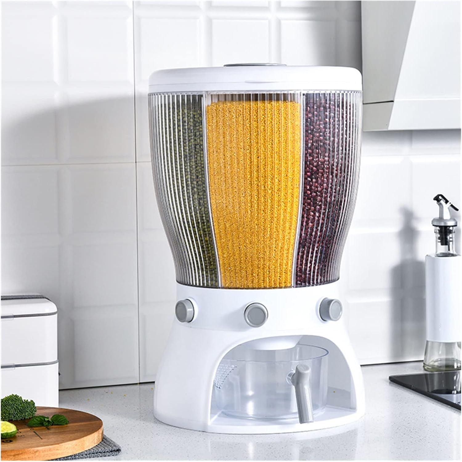 Description:Material: PET+PPSize: approx. 42x26cm/16.5x10.24 inchCapacity: 9L-10LPackage Includes:1 Piece Grain Storage Dispenser