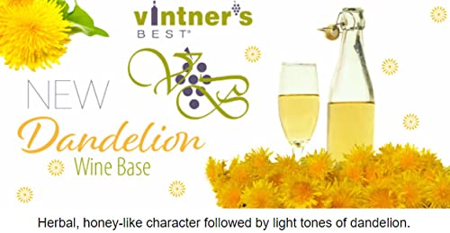 Dandelion Wine Base- Makes (5) US gallons. Herbal, honey-like character typical of dandelion wine. A blend of juice concentrates, dandelion flower extract, HFCS, malic acid and natural flavors designed to make a fermentable base for dandelion wine blend at 18.9B. Diammonium phosphate is added as a yeast nutrient. Just add yeast to ferment it. * Campden tablets, sorbate (or wine conditioner) and sugar may be needed for sweetening.