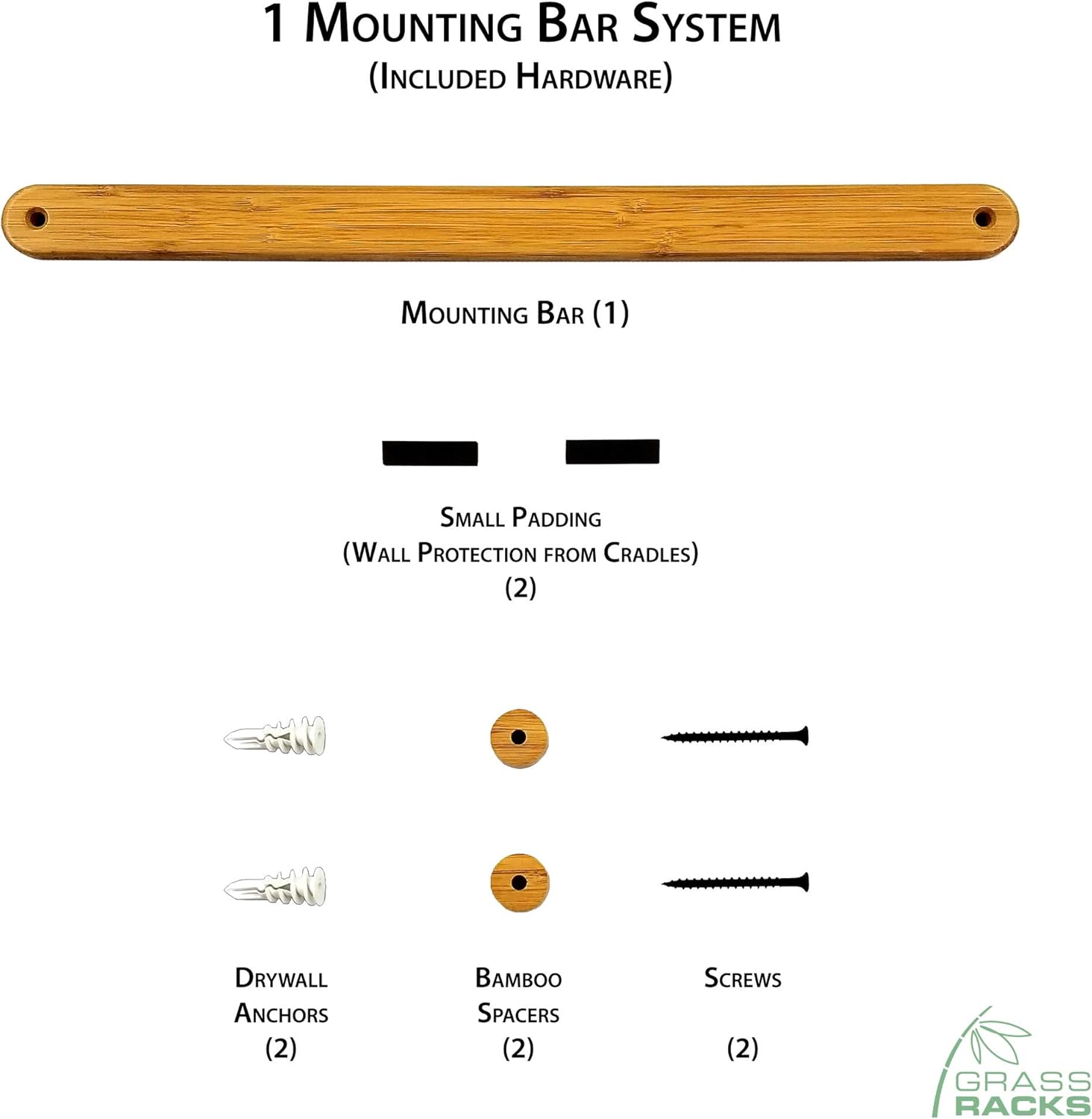 Our Bamboo Single Shelf is Single and Ready to Mingle. Our Single Shelf is our take on the floating shelf trend with one exception, it’s strong. Using the same mounting system as our racks, this shelf is easy to install, gorgeous, and holds up to 50 lbs. Our unique mounting system also allows you to interchange your shelf with the rest of our products with ease. Features Style. Gorgeous bamboo grain and rich golden color. Strength. Crafted from incredibly strong solid 1/2" bamboo. Supports up to 50 lbs. Easy-Installation. Grassracks' unique mounting system takes only minutes to install. Versatile. Mounting system allows for interchangeability with other rack series. Eco-friendly. Bamboo is one of earth’s most sustainable resources. Organized. Displays boards in a visible and space-efficient way. Safe. Special padding provides safety from dings, dents, and pressure spots. Hot-iron branded with our official Grassracks logo. Proudly made in the USA. Installed Dimensions 1 Shelf - 10" (H) X 23.25" (W) X 9.25" (D)