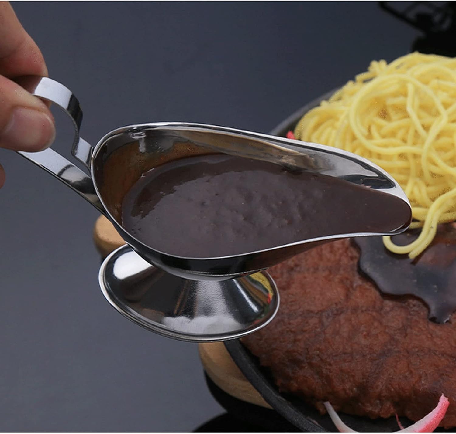 Product name:Gravy boat product material:Stainless steel material Product ounce: 8Oz Product Size:8.26in x 3.74in x2.36in Product package:One piece Prompt: 1.Please check the color and the size of the product before buying 2. Our shop does not include other items except the Gravy boat shown in the product photo 3. Please note that due to different monitors, there may be slight color difference, please understand. 4. Due to manual measurement, there will be a small amount of error. Please refer to the actual size. Thank you! 5. You can go to our store to see a variety of styles and types of products and colors 6. Welcome your sharing and feedback, so that we can provide you with better products and services This is the perfect gift for friends and family during housewarming, weddings, Mother's Day, Father's Day, Christmas and New Year's Day.