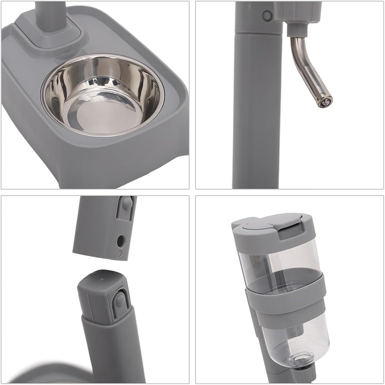 Gray Automatic Pet Drinking Fountain And Feeder Bowl With Height Adjustable For Dogs And Cats Features : Detachable bowl , easy to disassemble , to Crafted of stainless steel , easy to adjust the height It can provide water or food for dogs , promoting eating Suitable for dogs of all size and breeds Ensuring a comfortable feeding position at every stage of life Specifications : Component : PET , PP , ABS , Stainless Steel Height Adjustable : About.18-31CM / 5.51-13.19inch Water Capacity : 770ml Base Size : About 16x23.8cm / 6.3x9.37inch Color : Gray / Blue / Green Quantity : 1 Pc Package Includes : 1 PC Dog Feeder Note : 1.Please allow 1-2cm errors due to manual measurement , note that you donot mind before order 2.Due to the differences between different monitors , the picture may not reflect the actual color