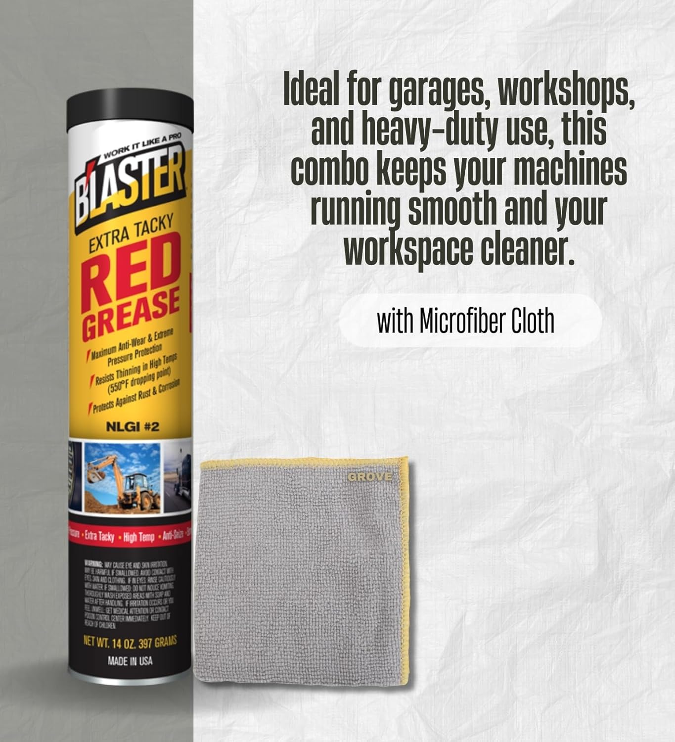 This Extra Tacky Red Grease is designed for high-performance lubrication in demanding applications. Formulated with extreme pressure additives and premium anti-wear agents, it provides reliable surface protection under heavy mechanical loads. Its tacky texture ensures the grease stays in place during operation, reducing sling-off and maintaining consistent coverage on critical parts. This grease is well-suited for use in automotive, industrial, agricultural, and marine environments where durability and stability are essential. In addition to its pressure-handling properties, this high temp grease tube offers strong resistance to oxidation and corrosion. It helps extend the life of metal components by forming a protective barrier against moisture, air, and environmental contaminants. Ideal for use on chassis, wheel bearings, and joints, the red grease also supports smooth equipment performance across a wide range of temperatures. This gift set includes a container of 14oz Extra Tacky Red Grease and one Microfiber Auto Cleaning Cloth. The cloth is ideal for handling excess grease, cleaning tools, and wiping down surfaces during or after maintenance. Set includes 2 items and is packaged to support lubrication and cleaning in workshop or garage settings. Product color, packaging, and cloth size may vary depending on availability. Suitable for general-purpose and high-load applications.