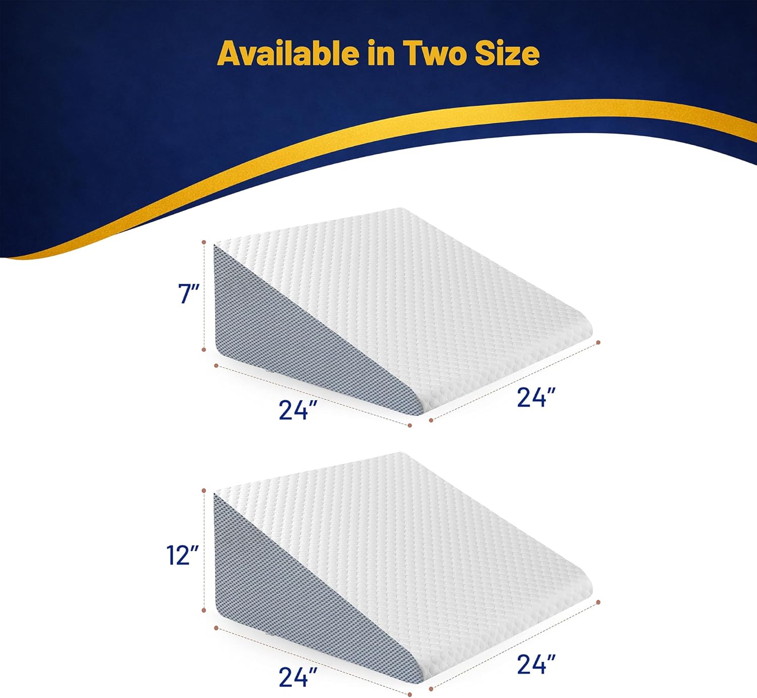The wedge pillow is a uniquely designed, triangle-shaped cushion that elevates the upper half of your body while you sleep, providing enhanced comfort and support for a more restful night's sleep. Its design is particularly beneficial for those seeking relief from acid reflux, as the slight elevation of the head helps reduce symptoms and promotes a feeling of well-being. Beyond its primary function, this versatile pillow is suitable for various uses, including sitting up in bed for reading, watching TV, working on a laptop, or resting after surgery. It also serves as an ideal solution for alleviating issues such as snoring, poor circulation, and discomfort in the neck, knees, shoulders, and back. With its gradual slope, this pillow can be used as an acid reflux pillow, anti-snoring wedge, post-surgery pillow, pregnancy support, or GERD relief. The portable design, allows you to easily move the pillow from the bedroom to the living room, bed, sofa, floor, or even take it with you while traveling or camping, adding both style and relaxation to your home décor.
