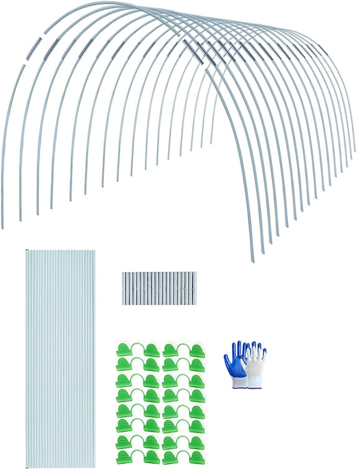 Features:1. Durable Material: Our fiberglass support columns are made of plastic-coated steel column material that is flexible and has more support space, durable and stable to protect your plants in foggy and windy weather.2. Ultra-fine Garden Support: Combine 3 splices/4 splices/5 splices, or more to DIY's own planting tunnel.3. Easy Installation: Bend the support post into an arch and drive it into the soil, then cover the garden net and secure it to the garden hoop with garden clamps.4. Versatile: This kit effectively protects tomatoes, cucumbers and other vegetables, plants from flies, insects, birds and other animals.5. After-sales Service: If you have any problem, please contact us immediately, we will help you solve it as soon as possible.Specifications:Material: Fiberglass S 3-pole Splicing - 8 Arch Package Size: 43*6*6cmS 3-bar Splicing - 16 Arch Package Size: 43*10*6cmM 4 Splice - 6 Arch Package Size: 43*6*6cmM 4 Splice - 12 Arch Package Size: 43*10*6cmL 5 Splices - 5 Arches Package Size: 43*6*6cmL 5 Splice-10 Arch Package Size: 43*10*6cmNotice:1.Actual color may be slightly different from the image due to light effect.2.Please allow 1-3cm deviation due to manual measurement.Include:25 * Support Rod 20 * Connecting Column16 * Retaining Clamp2 * Glovesor50 * Support Rod 32 * Connecting Column32 * Retaining Clamp2 * Gloves