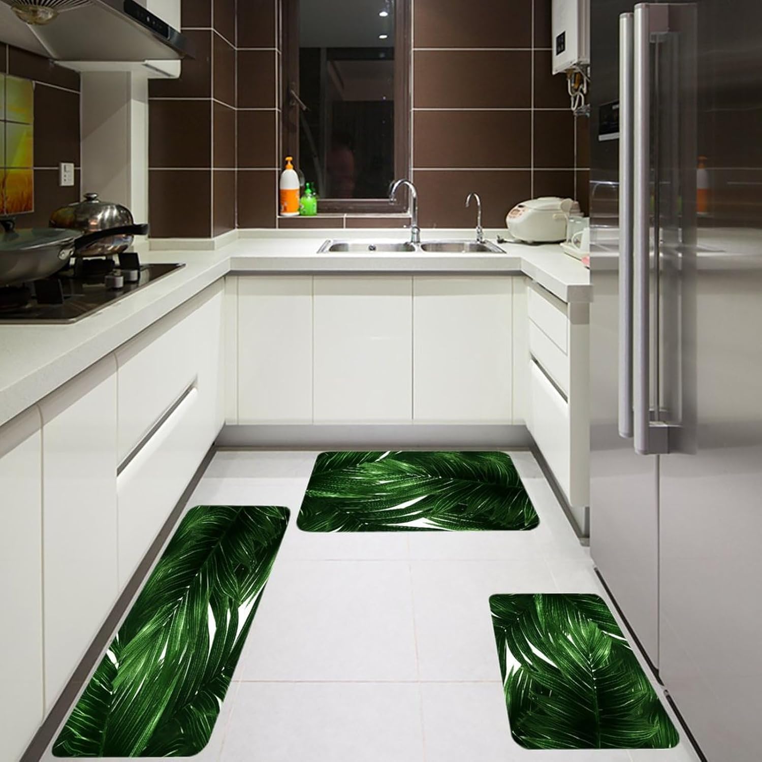 The kitchen is the heart of every home, and having reliable floor protection can transform your daily routine. Our 3-piece set of Thickened Kitchen Mats combines soft anti-pilling flannel with practical functionality, addressing all your daily needs. As Absorbent Floor Mats, they quickly soak up spills, preventing slips and falls while keeping your floors dry. The sturdy construction adds extra cushioning, reducing fatigue from long hours of standing at the stove or sink.No more settling for ill-fitting mats that leave your space unprotected. With three versatile sizes, including a Kitchen Runner Rug for narrow areas, this set covers every corner of your kitchen. The non-skid backing of our Anti-Slip Kitchen Rugs ensures they stay securely in place on tile, hardwood, or laminate floors, so you can move around with confidence. These Washable Kitchen Rugs are also fade-resistant, maintaining their fresh look even after multiple washes.Why choose plain floor coverings when you can have style and utility? Our Customizable Kitchen Mats let you print unique designs, turning them into eye-catching Decorative Kitchen Mats that complement your decor. Perfect as Bathroom Rug Sets, Outdoor Floor Rugs, or Multi-Purpose Floor Mats in laundry rooms, they’re a versatile addition to any home. As Stain-Resistant Floor Mats and Quick-Drying Rugs, they offer long-lasting performance with minimal upkeep, making them the ideal choice for busy households.