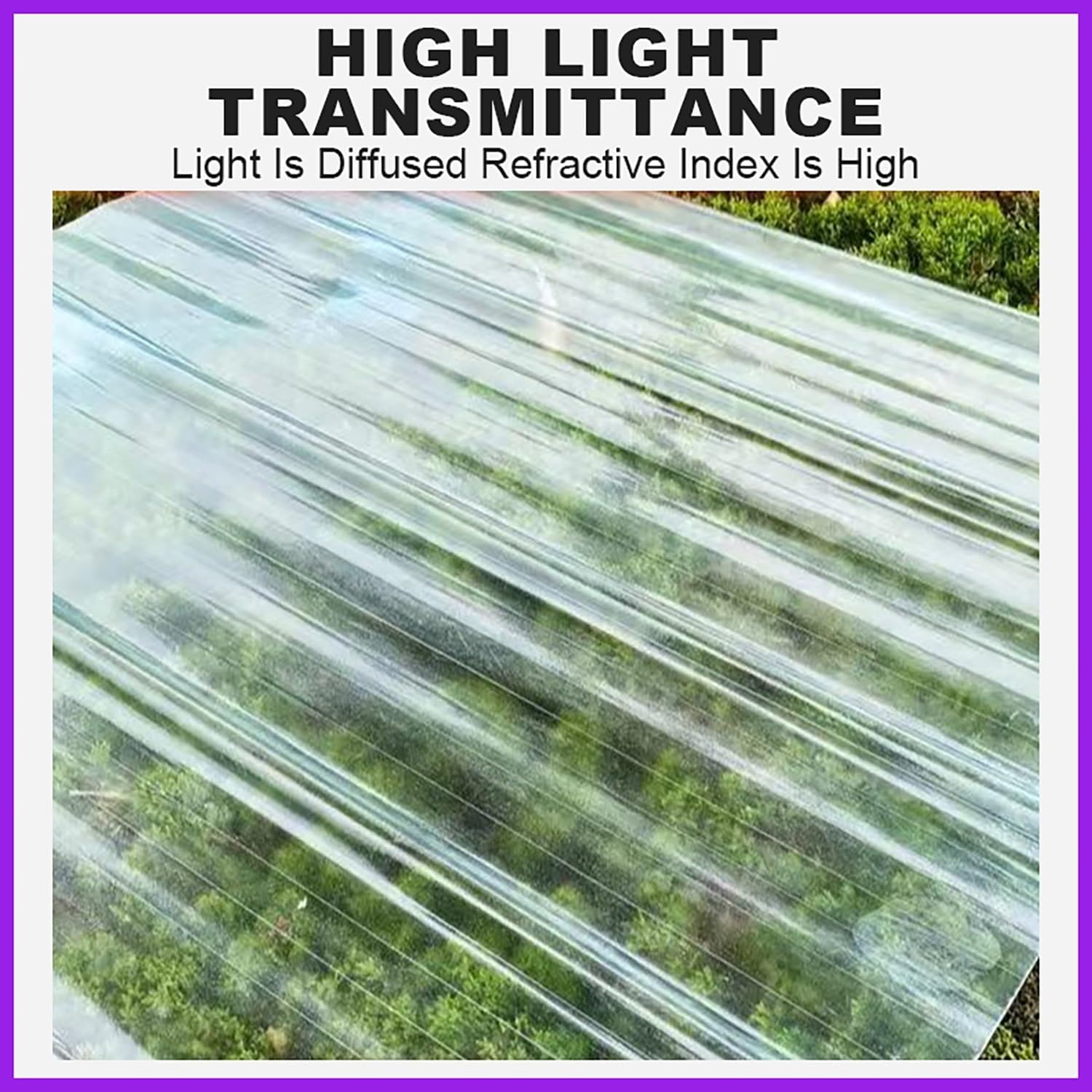 Sun Shade Translucent Canopy Roof Panel Greenhouse PanelsBuilt with sturdy panels for outdoor shed use, our canopy is engineered to withstand rain, wind, UV rays, and extreme temperatures. The translucent roof panels provide excellent sun shade while allowing natural light to filter through, creating a bright yet comfortable environment.The greenhouse panels allow just the right amount of sunlight for plant growth, making them perfect for hobby gardeners. At the same time, they prevent overheating, ensuring a well-ventilated space for vehicles, tools, or outdoor furniture.These easy-to-cut panels can be trimmed to your desired size using basic tools, allowing for seamless installation on any structure. Key Features:The sturdy panel material resists cracking, warping, and fading, ensuring years of use with minimal upkeep. Simply rinse with water to keep it looking clean and new.From carports and patio covers to livestock shelters and storage sheds, this canopy is designed for versatility. Its sleek, modern design blends into any backyard, driveway, or garden while providing reliable protection.Friendly Reminders:Due to manual measurement, please allow for a size deviation of 1-2 centimeters. Please refer to the actual product received for accurate dimensions.Our products are delivered in rolls. The material may be curved or not straight upon arrival, so it needs to be flattened and fixed before use.