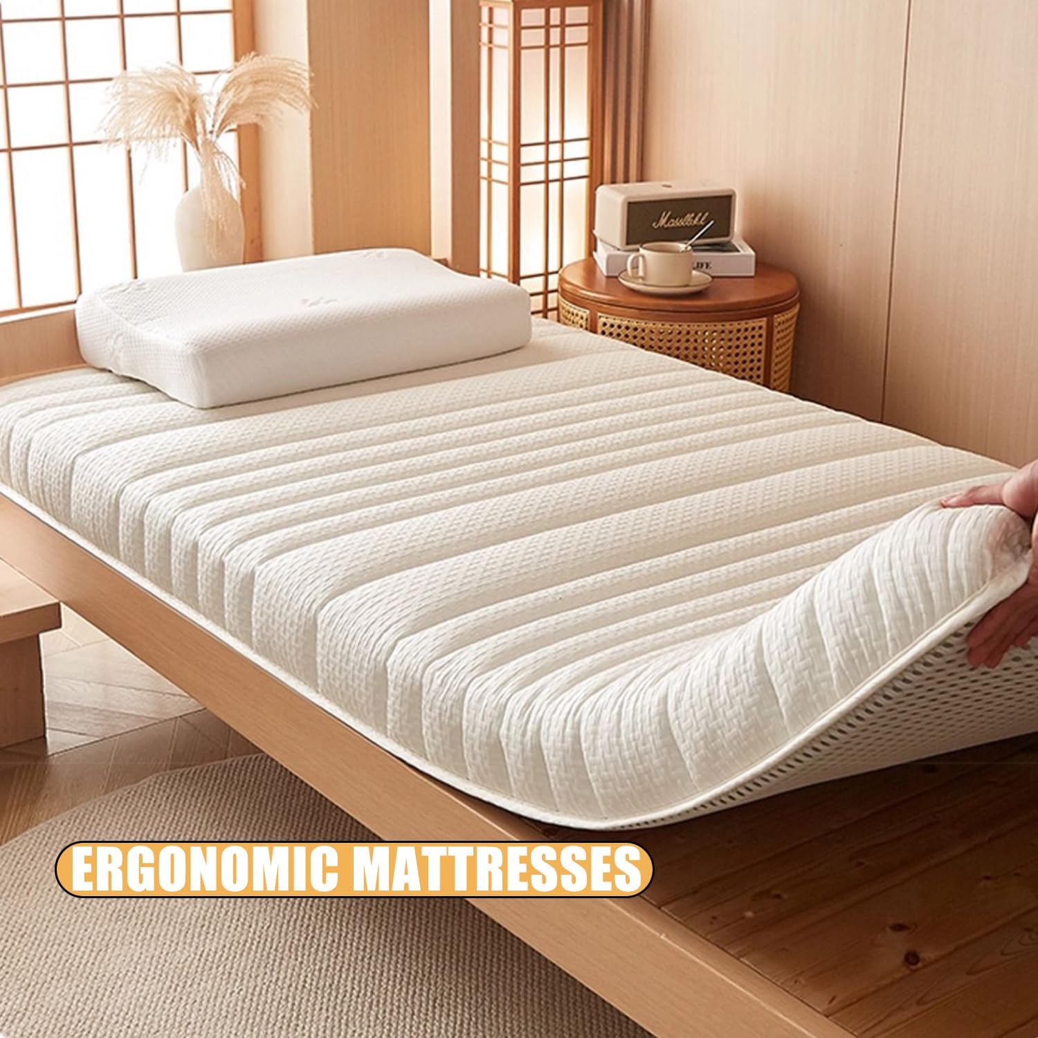 Thickened futon mattress in student dormitoryTwo thicknesses to choose fromInternally filled with latex layer and hard cottonPerfectly support your body and prevent deformationBringing you comfortable nights every nightFabric: Knitted fabricProduct filling:Aerobic fiber cotton and latex layer and compression resistant hard cottonColor: green,beige,greyThickness: 6cm(2.4in)/9cm(3.5in)(Note: Due to compressed tran sportation, the thickness of the mattress received may differ from the thickness marked on the measurement)Size:80x190cm(31*75in)90x190cm(35*75in)90x200cm(35*79in)100x200cm(39*79in)120x190cm(47*75in)120x200cm(47*79in)150x190cm(59*75in)150x200cm(59*79in)180x200cm(71*79in)Package includes: only futon mattress topper * 1(Pillow not included)Notes:Due to the light and screen setting difference, the item's color may be slightly different from the pictures.Please allow slight size and weight differences due to different manual measurements.Since the package is transported using vacuum compression, please pat the mattress gently in a ventilated environment after receiving the package. Wait 48 hours for the mattress to slowly regain its fluffiness (can be aired, not washed)