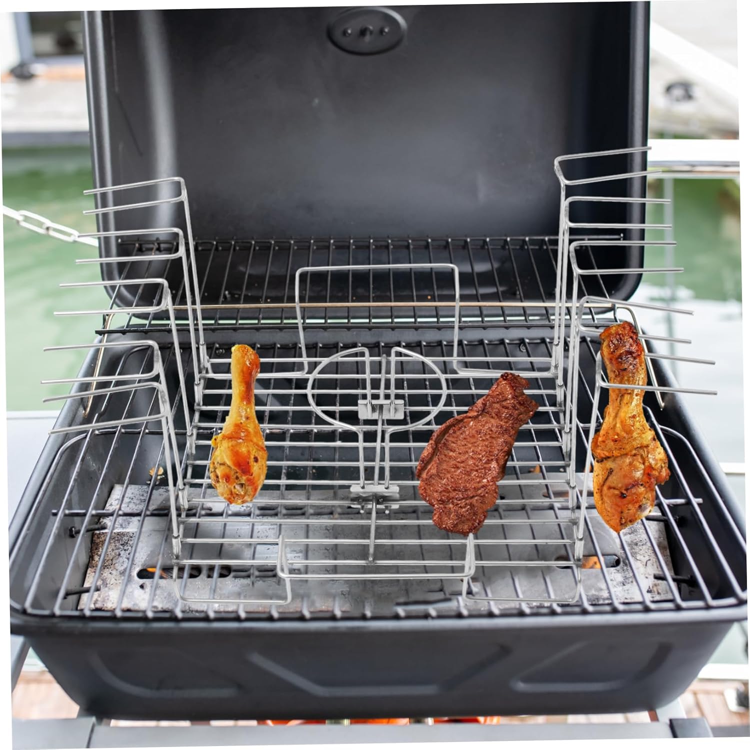 Package List 1 10 x forks 2 circle racks Characteristics -Simple Structure: It has a simple design, but very practical in use, giving you a using experience portable chicken stand. -Material:Stainless steel roaster oven stand -Color:Silver grill rack for outdoor grill -Heavy Duty: Stainless steel materials, safe and can be directly contacted with food barbecue grill rack holder. -Sturdy Material: Adopts precision production to enhances the stable characteristics and high reliability grill rack for chicken legs. -Size:27.00X24.50X7.00cm/10.61X9.63X2.75in chicken leg grill -Convenience: Very convenient to use. The grilling rack is suitable for friends, family, colleagues, etc grilled chicken rack. -Detachable Design: The feature is a detachable design and easy to use. It will meet your BBQ needs! bbq grill rackGoods Informationchicken roast tool Detachable, not only easy to carry, but also easy to store, saving space.metal chicken drumstick will meet your BBQ needs!.drumstick rack for grill The feature is a detachable design and easy to use.chicken leg rack The surface is smooth, so that the roast chicken legs are heated evenly.grilled chicken rack The chicken leg grill set with tray is made of stainless steel and has a