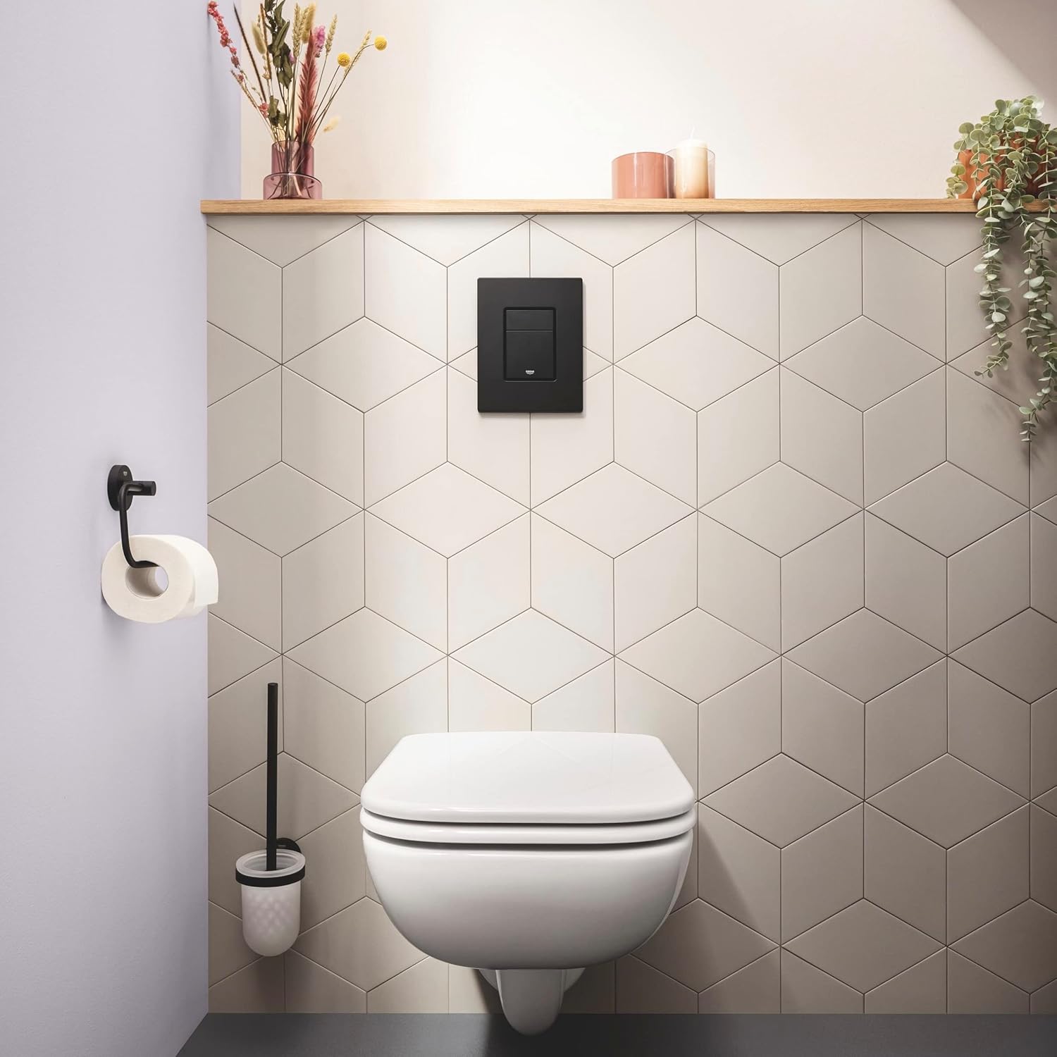 for dual flush or start & stop actuation for pneumatic drop valve AV1 for vertical and horizontal installation 156 x 197 mm made of ABS GROHE StarLight finish GROHE EcoJoy technology for less water and perfect flow with anti-fingerprint surface