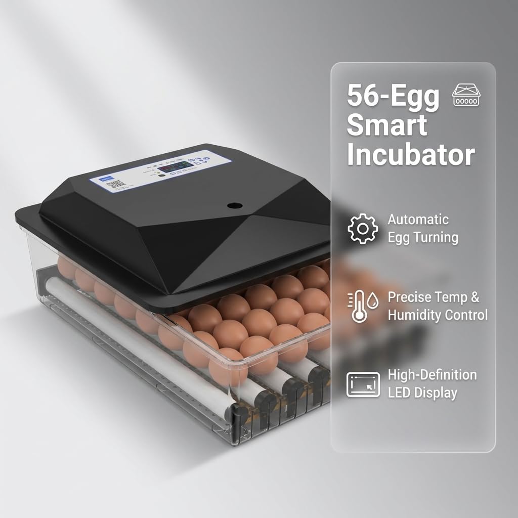 Fully Automatic Operation for Effortless HatchingOur incubator features an automatic egg turner that gently rotates eggs every 2 hours, simulating the natural nesting process and eliminating the need for manual turning. This ensures even heat distribution and significantly improves hatch rates, making it perfect for busy hobbyists and small-scale farmers.