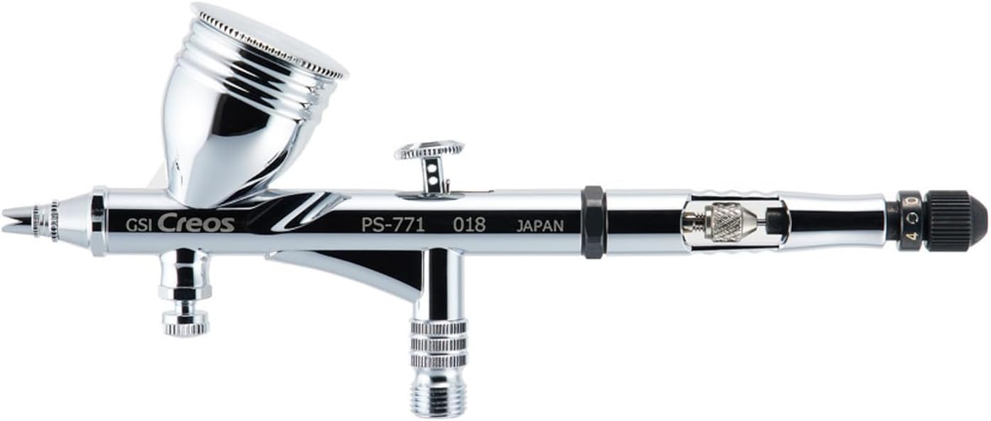 GSI Creos Mr. Airbrush Custom Grade 018 Double Action Hobby Paint Tool Flagship model of GSI Creos airbrush. By thoroughly tuning the GSI Creos paint into a low-pressure linear compressor, it is possible to achieve a delicate painting with the highest accuracy. It is comfortable for experienced modelers. Nozzle diameter: 0.007 in (0.18 mm) Paint cup capacity: 0.4 fl oz (10 cc). (From Amazon.co.jp)