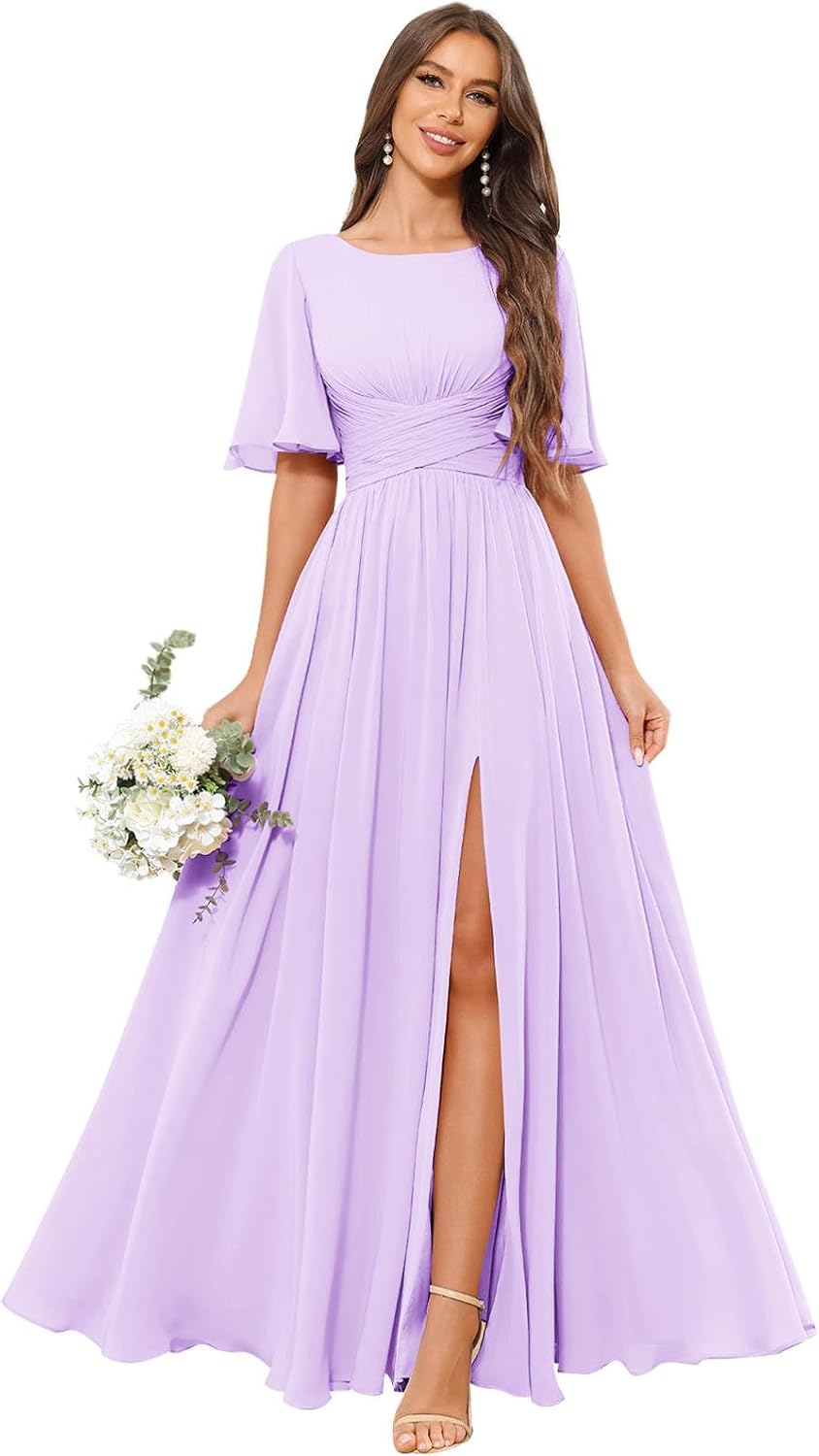 | Embellishment Feature | a line, flutter short sleeve, ruffles chiffon, with high slit, with pockets |