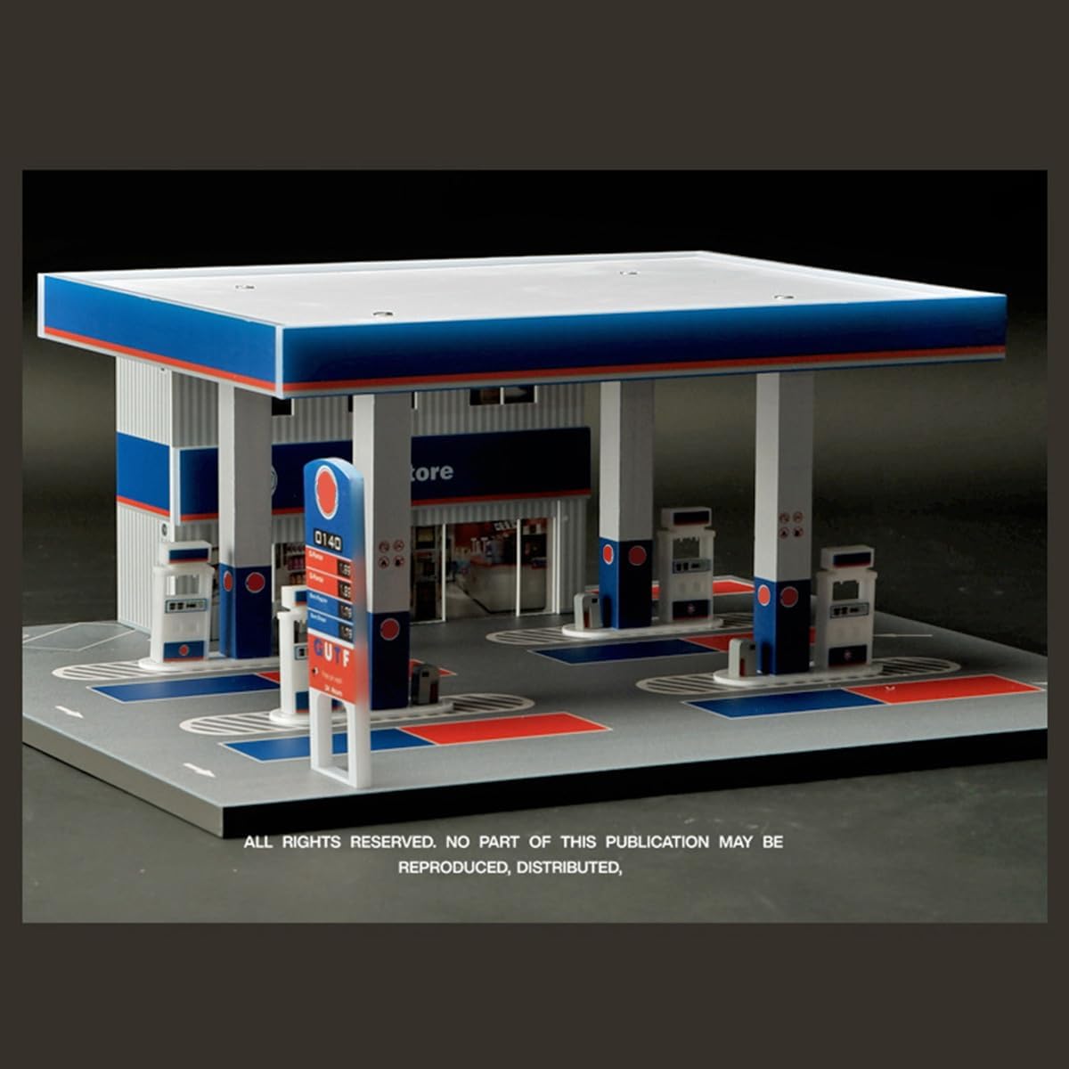 Step into a miniature world of automotive nostalgia with this meticulously crafted 1:64 scale Gulf gas station model. This large edition building scene captures every detail of a classic service station, from the iconic Gulf branding to the precise architectural elements that defined these automotive landmarks