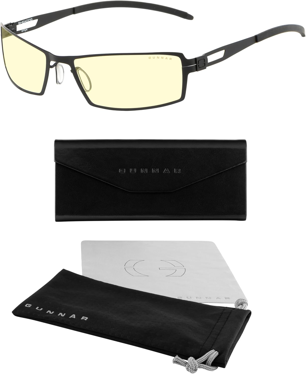 Product Description GUNNAR produces the only blue light blocking computer and gaming glasses with Patented Lens (#9417460) Technology that is recommended by doctors to protect and enhance your vision. GUNNAR improves performance while viewing tablets, smartphones, TV & computers to reduce digital eye strain, fatigue and headaches. Unlike other blue light blocking glasses, GUNNAR developed the Blue Light Protection Factor™, telling you exactly how much of the peak blue light spectrum (450nm) we're blocking. Not all blue light glasses in the market protects you from the strongest high-energy visible light. The preferred gaming glass for men and women, GUNNAR protects against symptoms stemming from prolonged screen-staring including migraines, headaches, dry eyes, blurry vision, negative effects of blue light exposure, cataracts and macular degeneration SPECS (in mm) Lens Width: 56, Bridge: 18, Temple: 130, Weight: 16gm, Fit: Medium. GUNNAR produces ergonomically designed gaming/computer eyewear with a lightweight frame to give you a full day of comfortable screen viewing. INCLUDED with your purchase of our gaming and computer glasses - microfiber pouch, microfiber cleaning cloth. GUNNAR gaming glasses enhance performance and provide a competitive edge. Play better with styles designed for panoramic viewing and audio headset compatibility. From the Manufacturer Your eyes are tired staring at a computer for hours and hours takes its toll. The common solutions for handling eyestrain require you to modify your work habits or take numerous breaks throughout the day. They're all patchy fixes that pull you away from your work. So take your choice digital eye fatigue or less productivity. There is a better technology driven solution that works with and enhances properties of the human eye. Gunnar digital eyewear increases visual performance, prevents Digital Eye Fatigue (DEF) and protects against full-blown Computer Vision Syndrome (CVS). It all begins with i-AMP lens technology - an optical platform that incorporates proprietary lens materials, lens tints, lens coatings, and lens geometry. Gunnar digital performance eyewear is engineered for an immediate and profound visual advantage and now even the most demanding computer users are more productive and more effective for longer periods of time. Gunnar Digital Performance Eyewear - the must have digital performance equipment for your digital lifestyle.