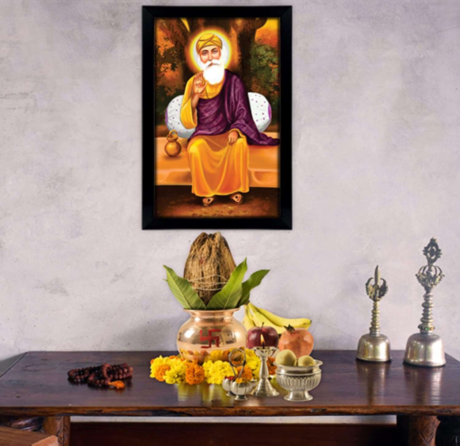 These God photo frames can be a great way to decorate your walls. This photo frame is perfect for decorating your place in a religious way and filling it with positive vibes. This frame also has an option to change the picture according to your choice.Includes: Pack includes one photo frame with Guru Nanak Dev Ji poster.Frame Color: BlackMounting Type: Wall mount - Poster painting comes with a frame ready to hang on the wall.Finish Type: Matt finish | Item Shape: RectangleFrame Dimensions: 13.5" x 19.5" inches | Fit Photo Size: 12" x 18" inches.Material: MDF wood, eco-friendly frame, and top acrylic glass sheetDisplay Method: This frame comes with a Guru Nanak Dev Ji poster. You just need to hang where you want. The Guru Nanak Dev Ji picture is printed on high-quality paper, which can be replaced and used as a poster. At the same time, the frame can be utilized in some other way to present.Great Gift Idea: it’s a perfect gift option to give on any religious occasion, Indian wedding, puja ceremony, baby shower, housewarming, etc.