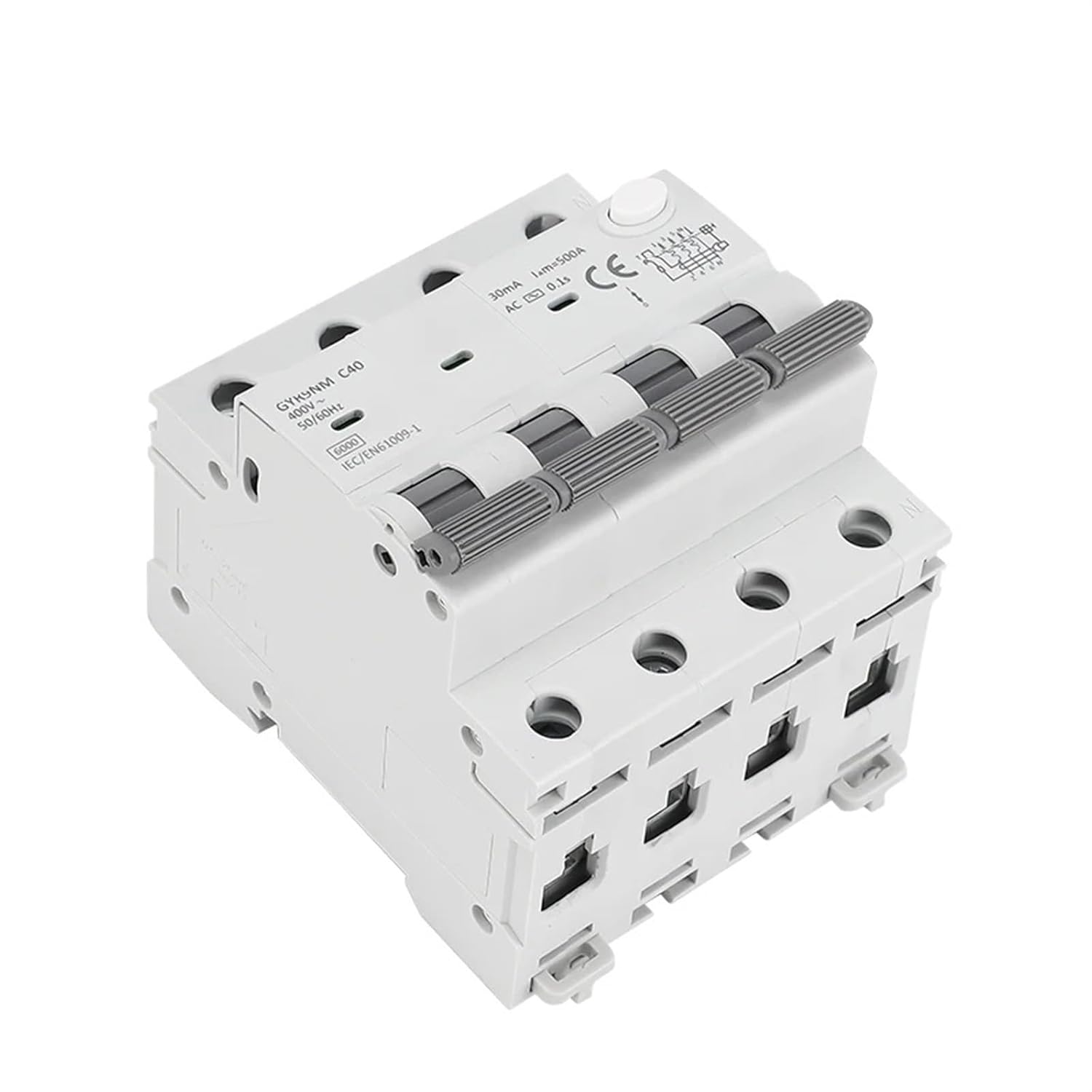 Magnetic Circuit BreakersGeneral***It is AC Electromagnetic typeRCBO 2P/4P 10A 16A 25A 32A40A 30mA/100mA/300mA*****If two handles are all on OFF position, means exist residual current!**If left handle on OFF position, means MCB failure!GYR9NM SeriesRCBO-Residual current circuit breaker with over-current protectionare mainly used in lines with AC 50Hz or 60Hz, rated voltage of 240V and rated current to 40A. It has the functions of leakage, overload and short circuit protection.When the personal contact or the leakage current of the power grid exceeds the specified value, the product can cut off the fault current within 0.1s, protect the personal safety and prevent the equipment from failure caused by leakage current, and can be used to protect the fault The overload and short circuit of the protective line.RCBOcan also be used as the infrequent breaking and switching of the line under normal conditions, and it is mainly used for the protection of building lighting and distribution system, it also be used as the lower road board for infrequent breaking and switching of lines, mainly used in the protection of building lighting and power distribution system.