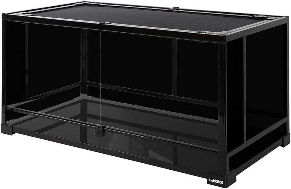Flat Pack- Assembly Required Choosing a home for your reptile, amphibian, or invert is an important decision. After decades of studying reptiles and their living environments, HabiStat’s range of Glass Terrariums are built to last/environments for life. Available in a wide variety of shapes and sizes with a sleek, black design our tanks will be a great centrepiece in your home and with wall to wall glass will provide an uninterrupted 360⁰ view of your animal. Blacked out sides (18"x18"x18" and above) provide security and privacy for your animal. This can be provided via décor and plants in the smaller prebuilt tanks. Full screen top ventilation allows UVB and infrared penetration and is completely removable for easy access while decorating or cleaning. Easy access via the front opening doors or mesh top for maintenance, feeding and decorating. A specially designed lock will prevent escape and the doors can be opened separately. Perfect for Bio Active Set Ups, the waterproof base allows for drainage layers via the use of HabiStat clay-balls and drainage mesh for a bioactive enclosure, so any excess water gathered in the drainage layer can be siphoned out as and when needed. The reptile keeper can also easily create water pools, add tropical plants and foliage.