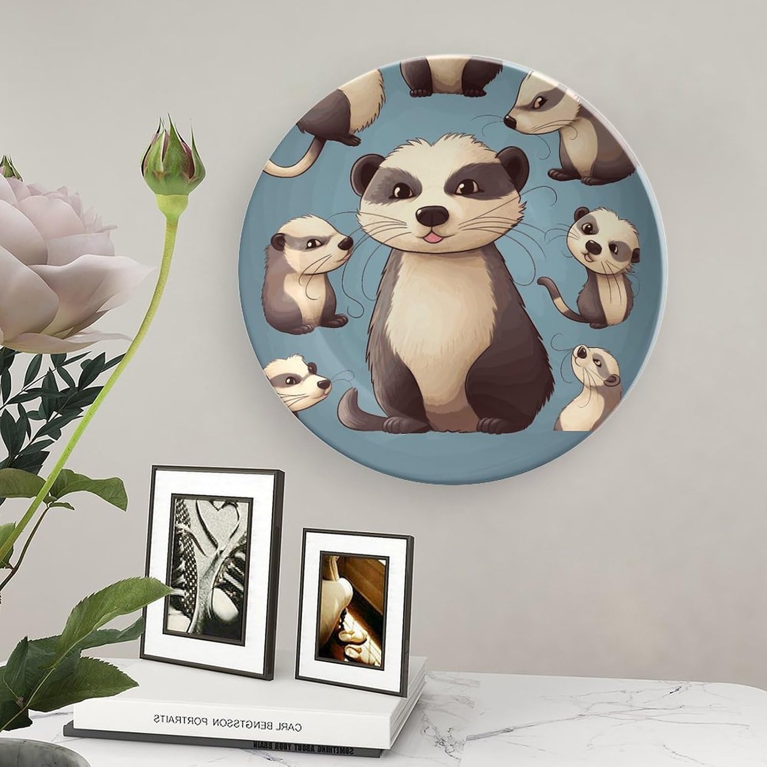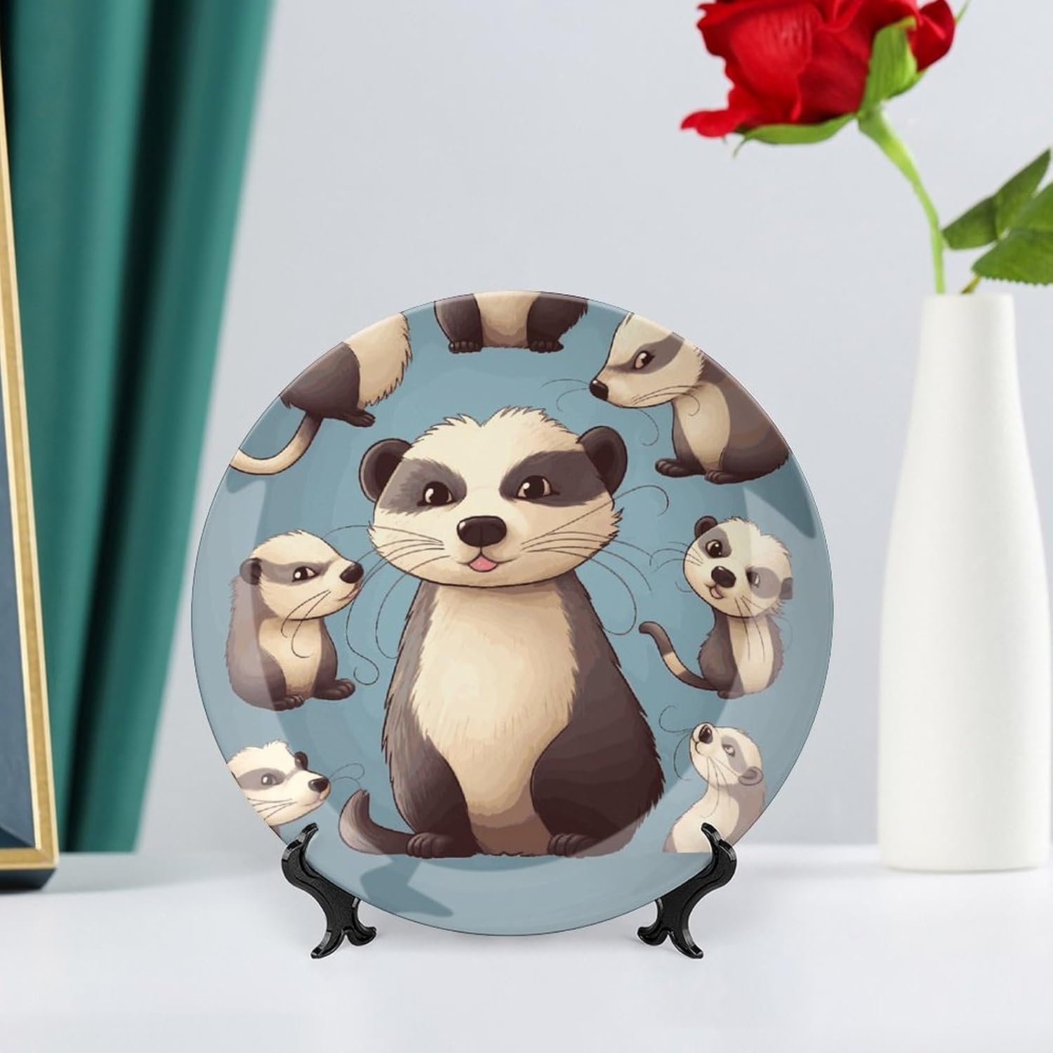 Our versatile ceramic Hairy Ferret plates are made of smooth ceramic material. The lightweight bone china plates can be easily placed anywhere you like, showcasing their decorative charm.This bone china dessert plate is available in four sizes: 6 inches, 7 inches, 8 inches, and 10 inches, making it an ideal choice for display items.Personalized decorative plates, perfect for displaying handicrafts, are an ideal choice for home décor. This vertical ceramic plate makes a wonderful gift for housewarmings, anniversaries, weddings, birthdays, Thanksgiving, New Year's, or any holiday.This French country-style ceramic plate is suitable for decorating or using in living rooms, offices, hallways, dining rooms, entrances, hotels, holiday homes, and other places.