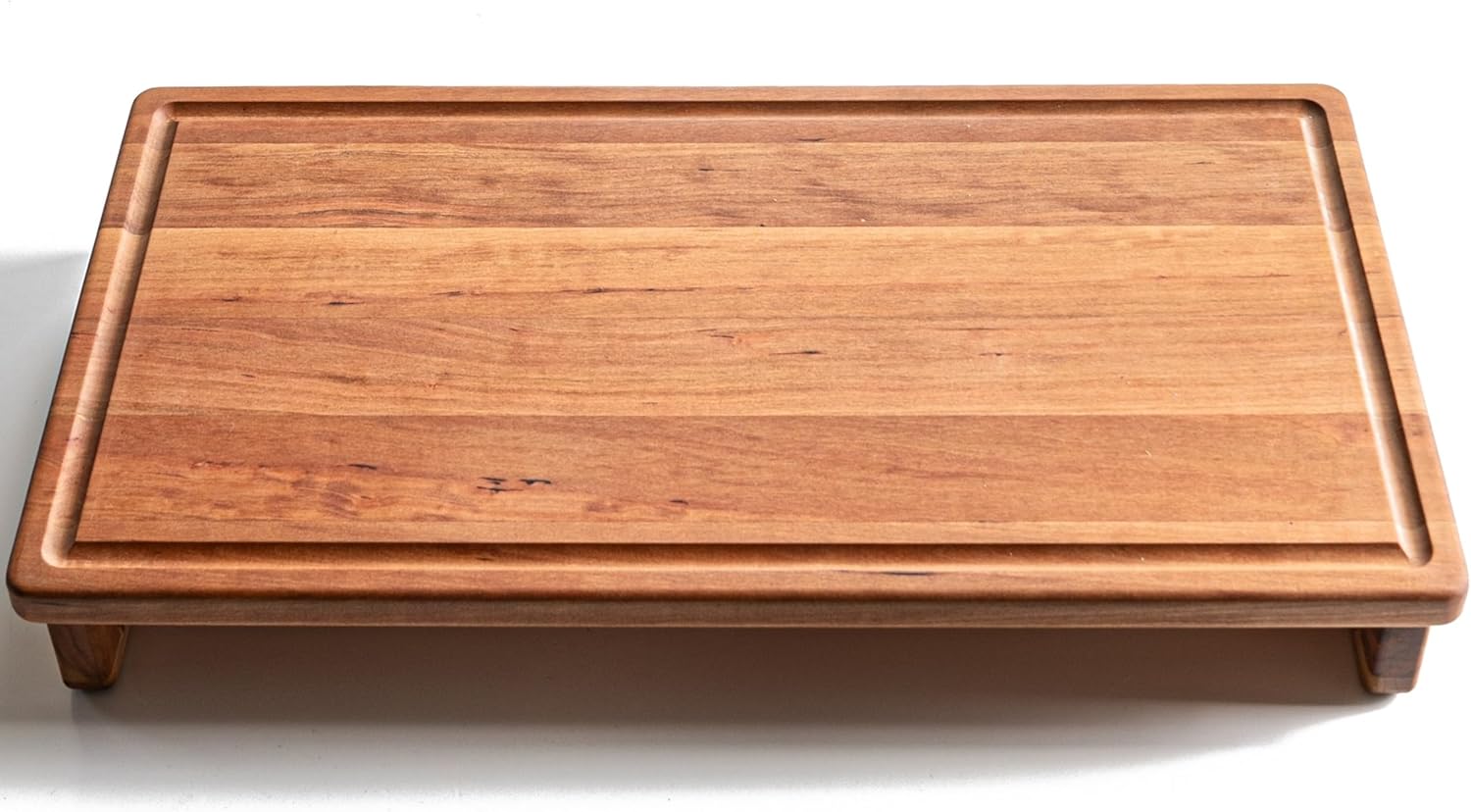 Half-Wood Stove Cover. Size is: 21.25'' x 11'' x 3.38'' (54cm x 28cm x 8.6cm). Introducing our exquisite solid cherry wood half-stovetop cover, meticulously crafted with precision in our Texas workshop. Measuring 21.25'' x 11'' x 3.38'', this stunning piece offers both functionality and beauty to your kitchen space. Made with the finest cherry wood, it boasts a natural elegance that enhances any culinary environment. Its thoughtful design includes a juice groove to safeguard against spills while ensuring a clean cooking surface. Finished with a food-safe finish and free from paints or stains (0-VOC), this half-stovetop cover epitomizes quality, sustainability, and craftsmanship, making it a must-have addition to your home.