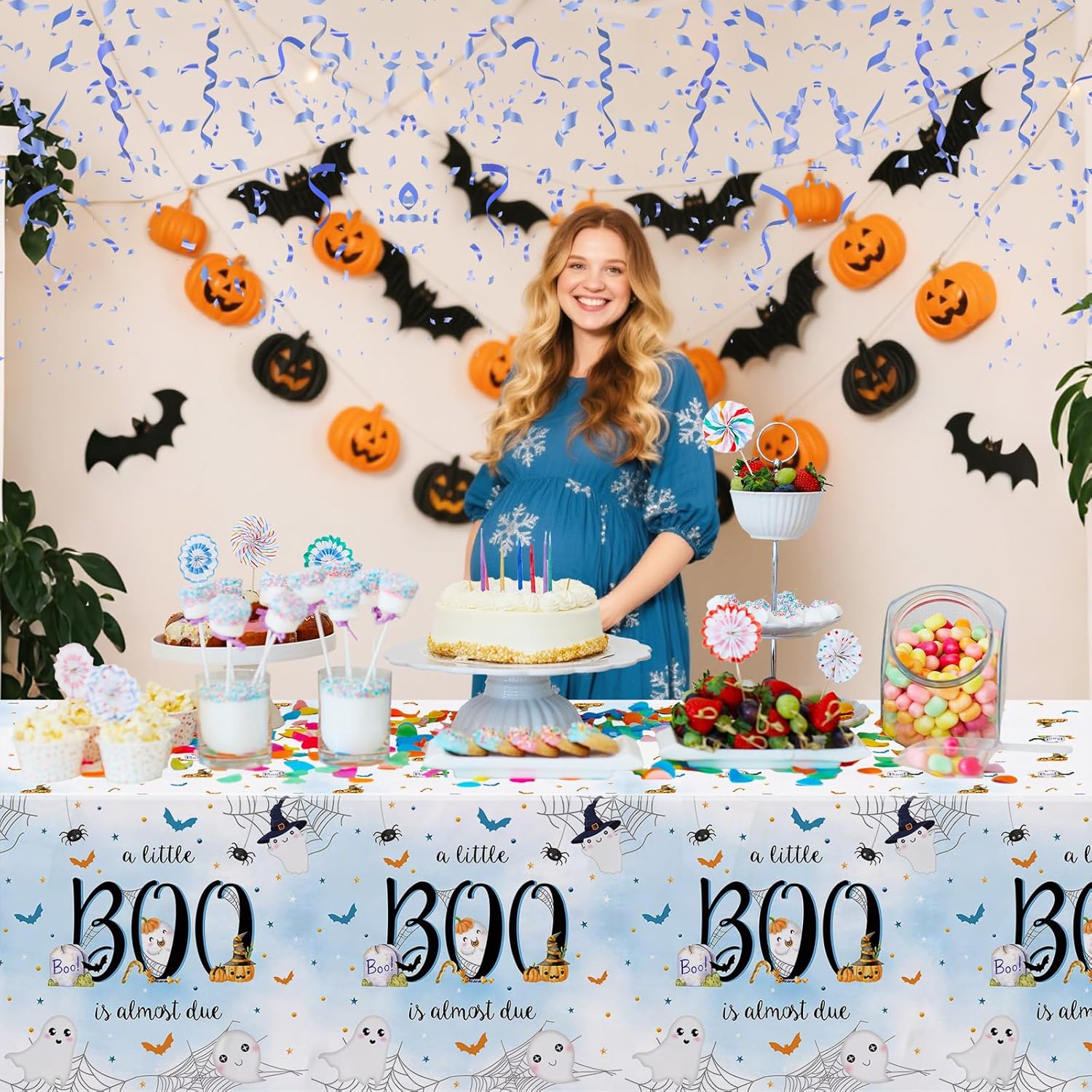 Halloween Little Boo Baby Shower Decorations for Boy, A Little Boo is Almost Due Party Supplies Blue Disposable Tableware Set 169Pcs Plates Napkins Plastic Tablecloth for Baby Shower Party