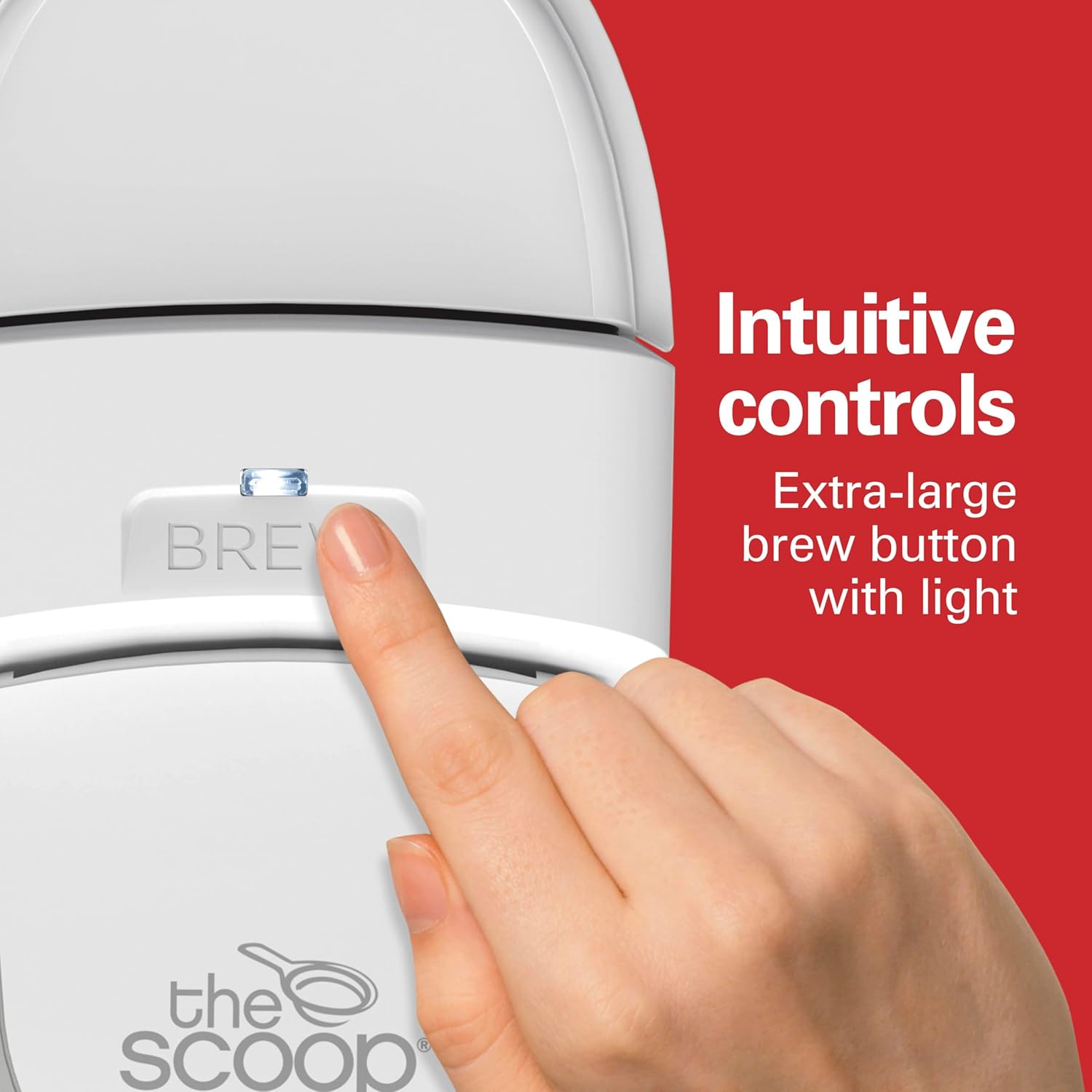The Scoop Single-Serve Coffee Maker by Hamilton Beach® brews fresh, delicious coffee and is easy to use. Just scoop your favorite ground coffee, place and brew. It doesn’t use pods or filters, and you can brew into an 8 oz. cup or 14 oz. travel mug.