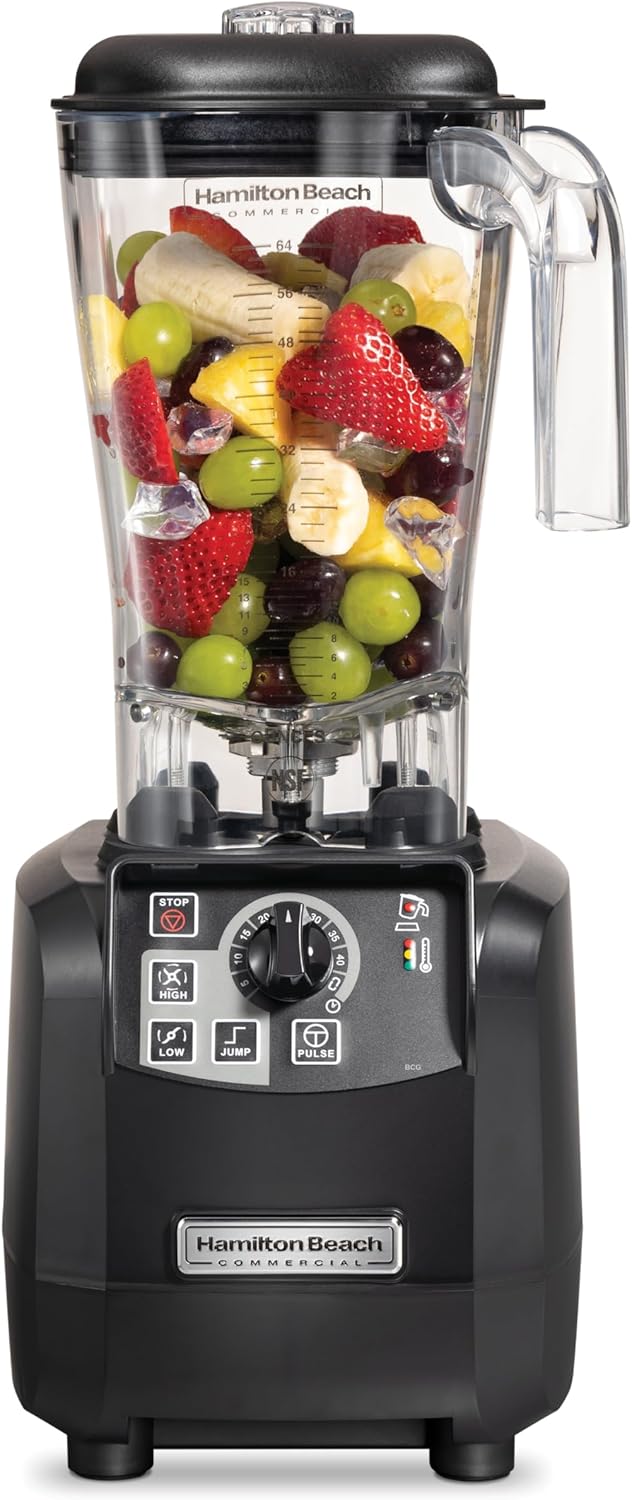 Carefully engineered and built to last, the Tempest® High-Performance Blender by Hamilton Beach Commercial® satisfies the fast-paced blending demands of bars, smoothie shops, restaurants and more. It's loaded with all the power, precision and features you need for every blending task. The patented Wave~Action® System delivers a super-smooth drink profile every time, so ice chunks and uneven textures are a thing of the past. The 3 HP peak* motor satisfies fast-paced blending demands, and the intuitive controls provide precision blending and easy operation for a wide variety of drinks. Stackable 64 oz. / 1.8 L BPA-free copolyester container has laser-etched measurement marks that last a lifetime and comes with a silicone-sealed lid to prevent leaks. NSF approved.