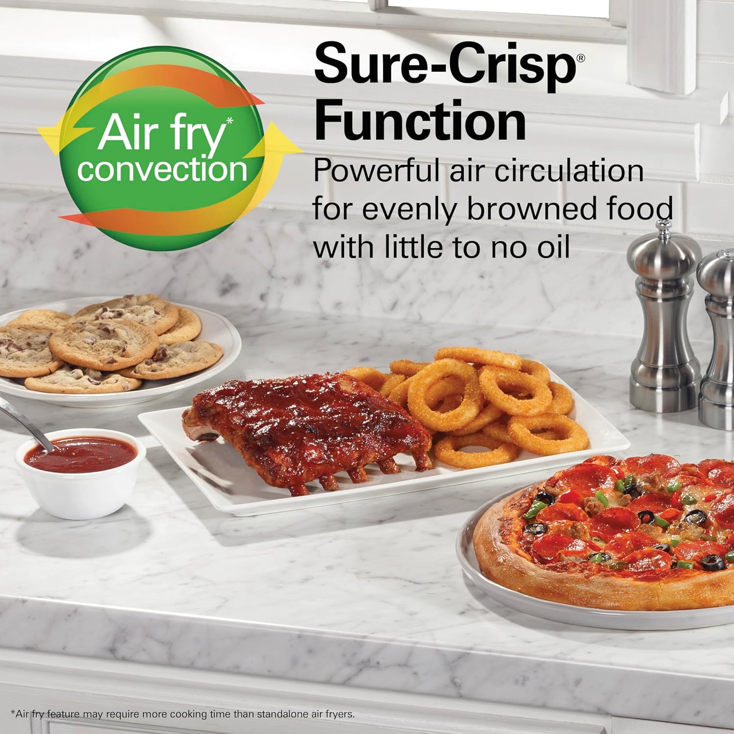 The Hamilton Beach® Sure-Crisp® Air Fryer Toaster Oven evenly browns and crisps food with powerful air circulation. Four versatile settings provide multi-functional cooking from breakfast to dinner and stainless steel front complements every kitchen.