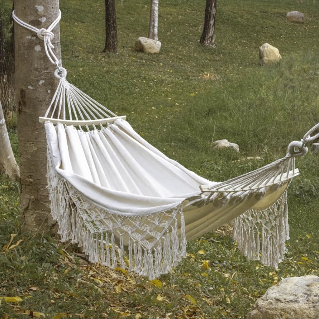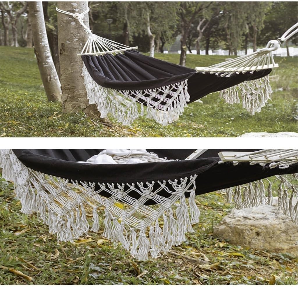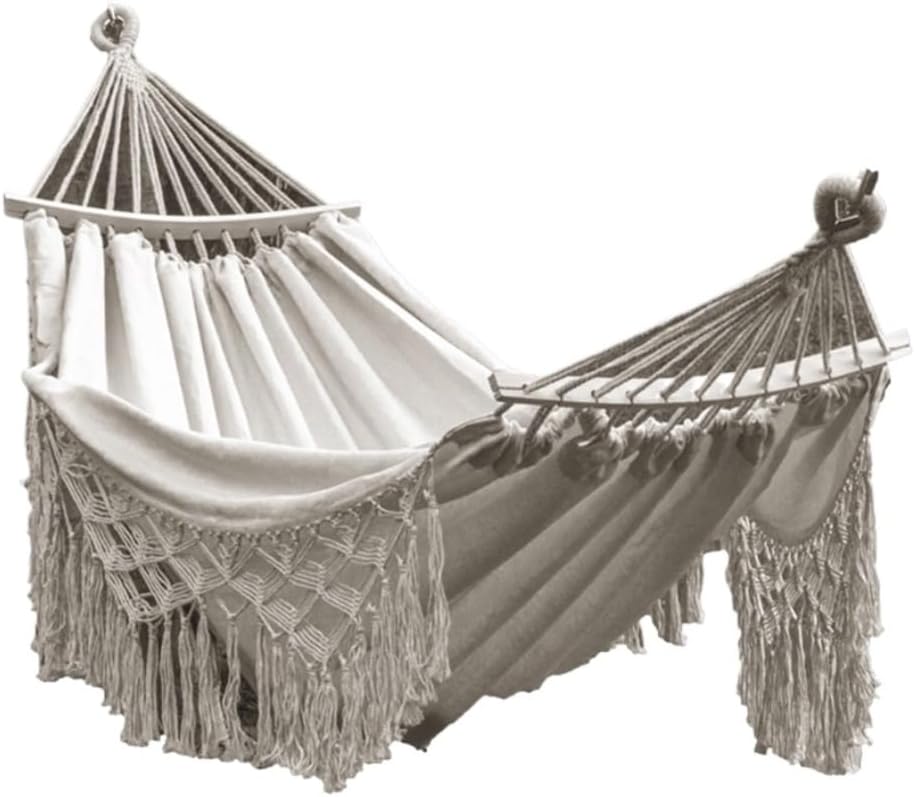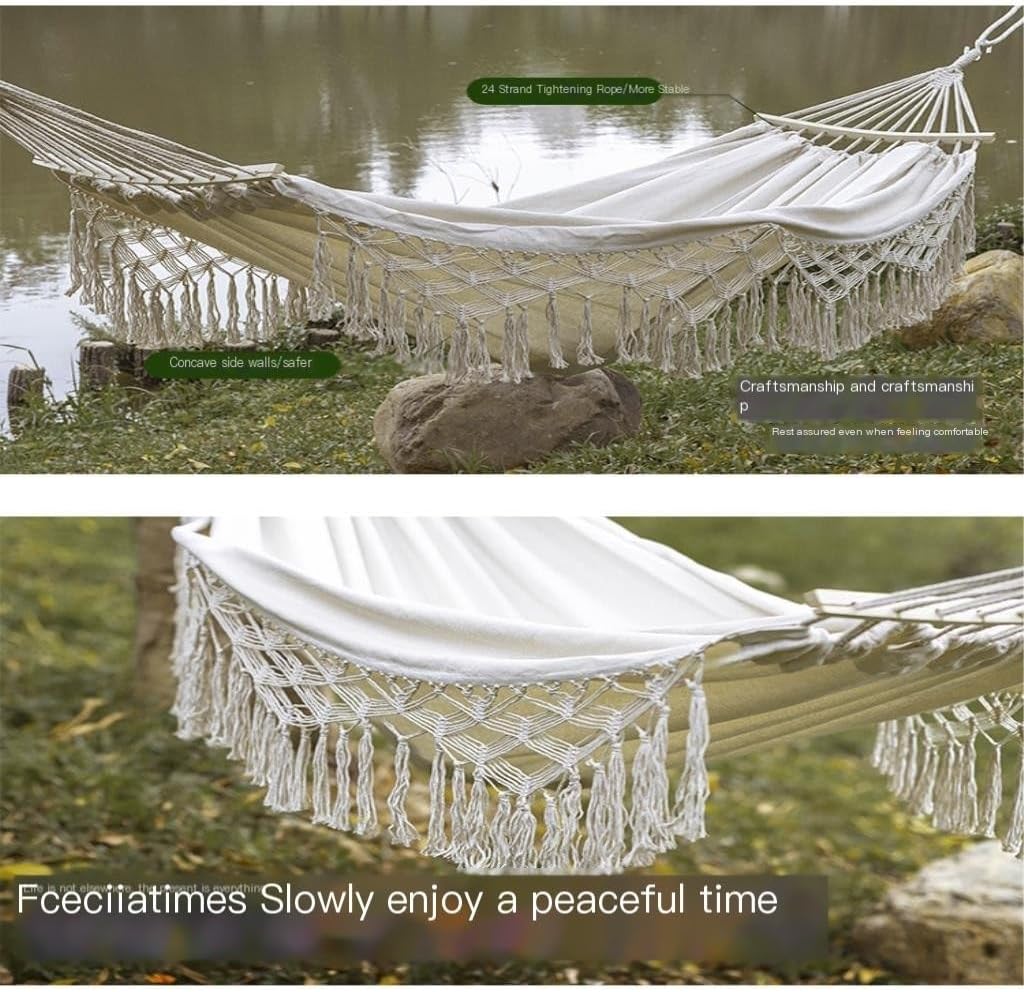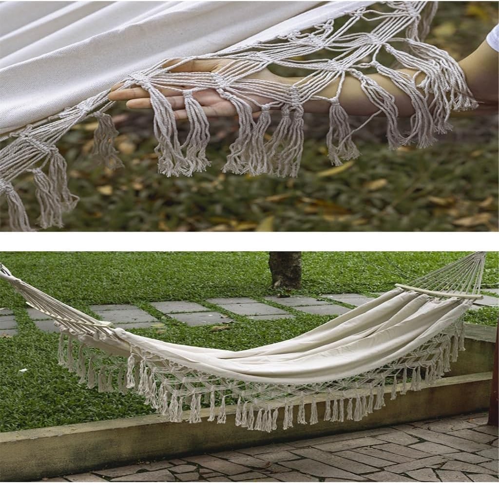 This hammock is perfect for rest and relaxation in the bedroom, garden, terrace, patio, balcony and outdoors. When people lie in the hammock, it feels like a boat swaying quietly on the lake, which is very wonderful.Product name: HammockColor: Various colors availableSize: otherWeight: 1.2kgApplication: Outdoor, garden, balcony, yard, home decoration, campingMaterial:nylonWhether it is friends or family, this hammock is a versatile, practical and unique way to bring them a new experience of comfort and quality.