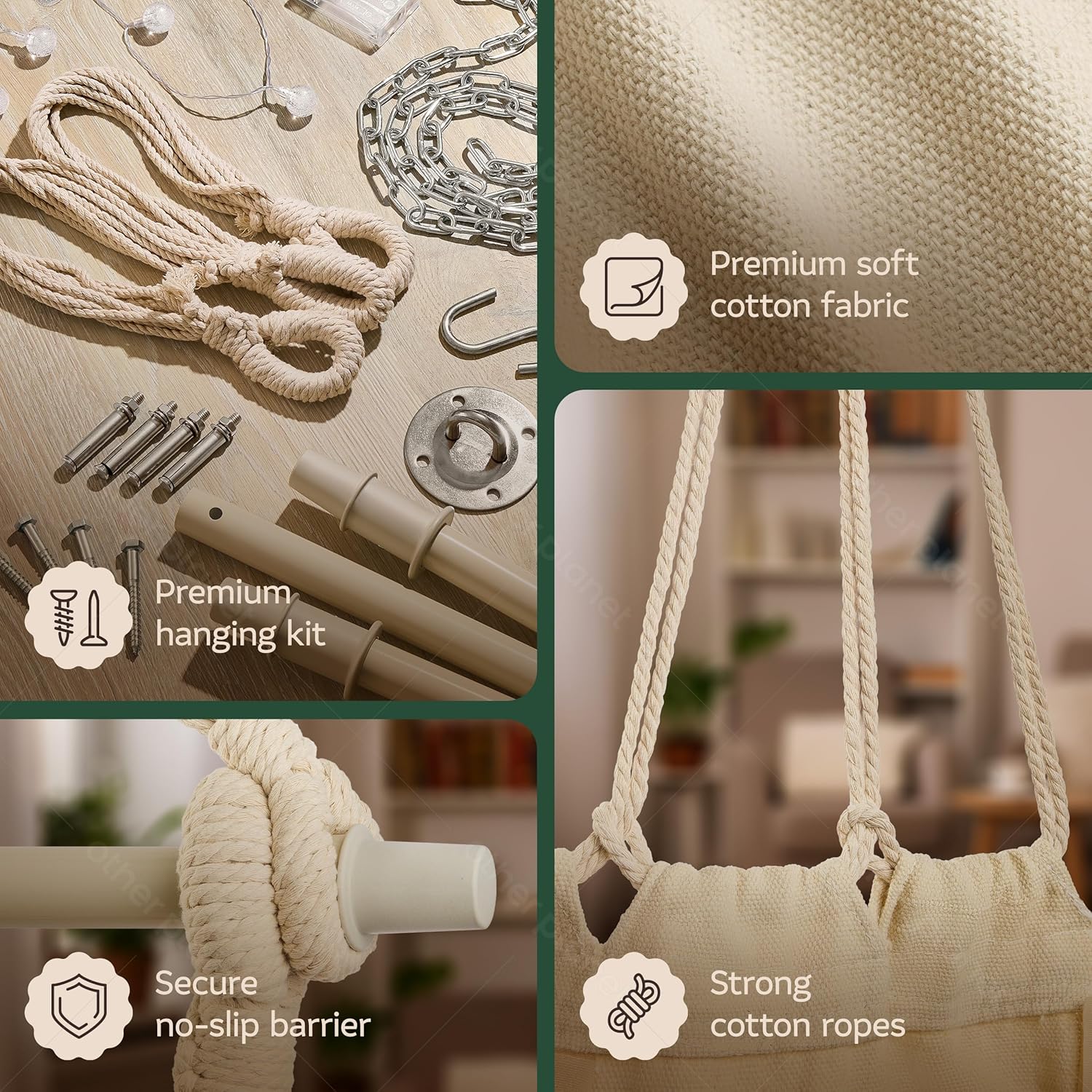 | Included Components | hammock, bag, bar, hanging kit, led lights |