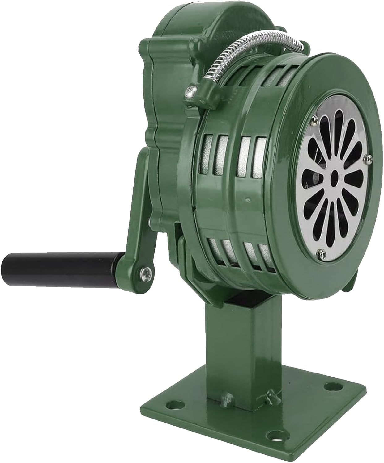 Hand Crank Alarm Manual Emergencies Alert 110dB Manual Operated Alarm For Disaster Preparedness SurvivalFeatures:Wearproof structure: Crafted from aluminum. Compose of a handle and internal mechanical device, it emit a high-frequency alarm when the handle rotates rapidly, effectively attracting attention in emergencies situations.Small size and portable: easy to carry and operate, providing effective warnings in emergencies situations, and extremely practical even in the absence of power.Adjustable volumes: The volumes can be adjusted according to the speed of the handle rotation. The faster the speed, the louder the sound, and can be opened to far enhances the sound effect.Alarm construction: adjustable volumes function, up to 110 decibels, and the hand cranked alarm emit clear and penetrating sound, with a wide transmission ranges and long service life.Widely used: Suitable for various emergencies situations such as sudden fires, attacks, or emergencies, and can also be used as a personals tool. Its manual operations allows it to provide effective alarms without the need for battery.Specifications:Component: Aluminum Sound pressure levels: 110DBValid ranges: Diameter 1000m / 3280feetColor:Green,RedSize:Approx.198mm/7.8''x205mm/8.1''Package Includes:1Piece Hand Crank alertNote:Please allow 1mm errors due to manual measurement. Due to the differences between different monitors, the picture may not reflect the actual color.
