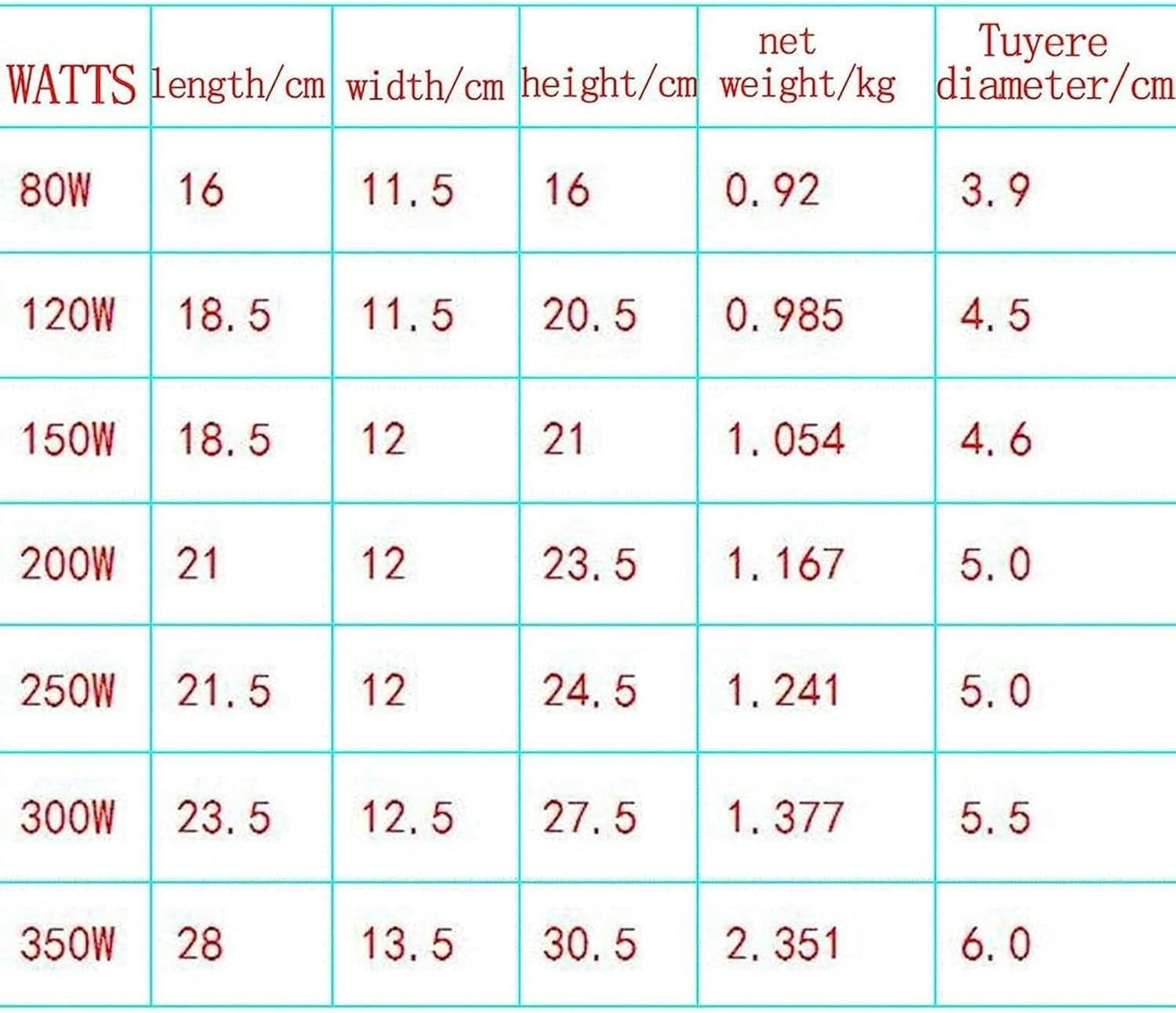 ✭【Hand Crank Blacksmith Forge Blower must-have for amateurs and professionals,Great for any kind of ignition.✭【BBQ Blower Parameters:Product Name:Manual Iron Gear BBQ Blower/Cooking Manual BBQ Air Blower/Hand BlowerMaterial: MetalPower: 80W, 120W, 150W, 200W, 250W, 300W, 350WRecommended for outdoor enthusiasts (80W, 150W, 200W)Commercial / Forge Recommendation (250W, 300W, 350W)Purpose: outdoor barbecue, camping / picnic / outdoor✭【Hand Fan Features:1.This series of blowers has strong structure, small size, light weight, large wind and beautiful appearance.2.The lightweight design makes it easier to control the device,Large and safe hand-cranked barbecue fan is an essential tool for barbecues.3.Regular maintenance of the gear will extend the life of the blower, When you are not using the blower, store it in a dry place to reduce moisture and rust on the metal surface.✭【Package Contents:1PCS X BBQ Blower✭【Note: 1.Light shooting and different displays may cause the color of the item in the picture a little different from the real thing.2.The measurement allowed error is +/- 1-3cm.