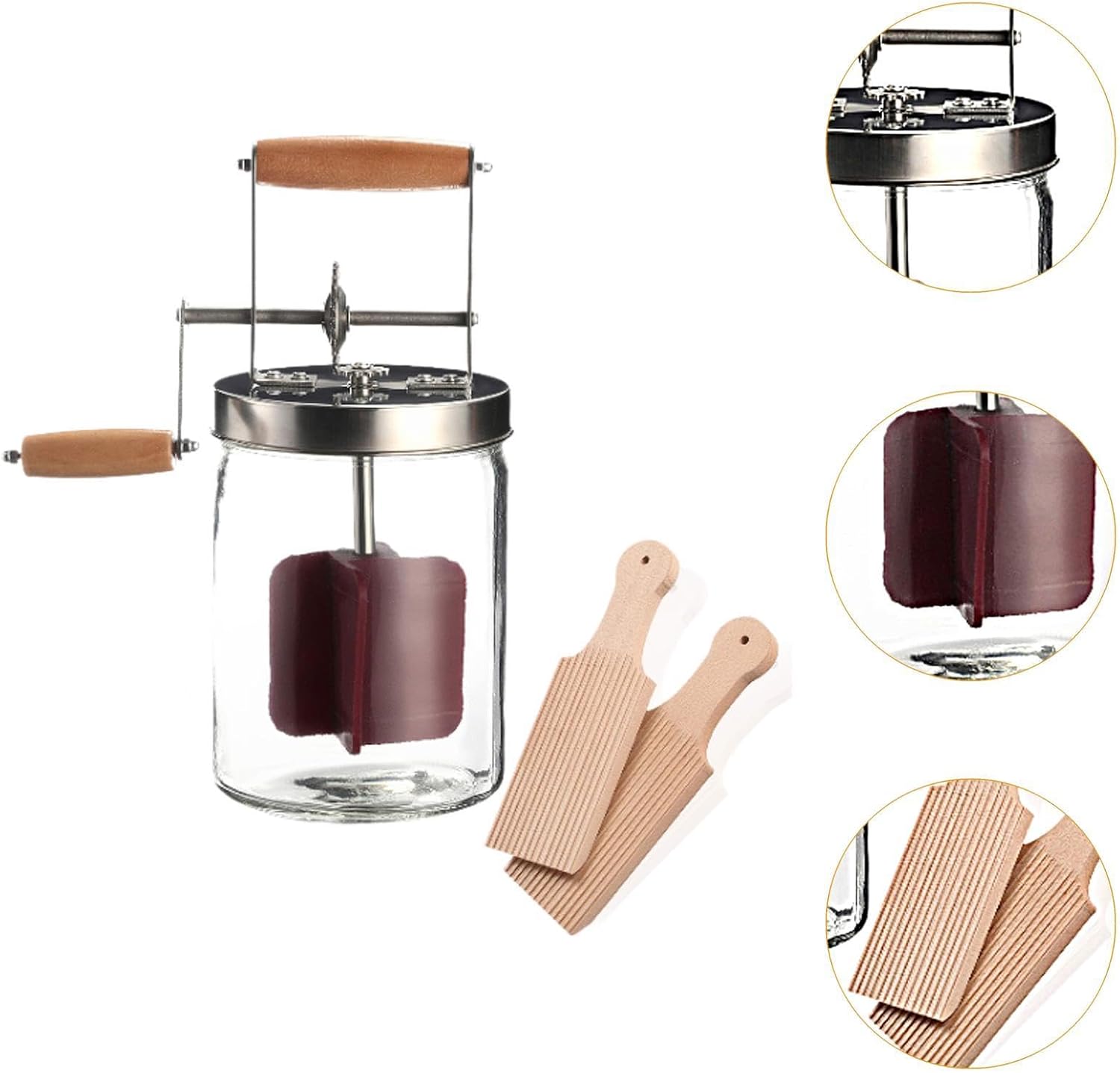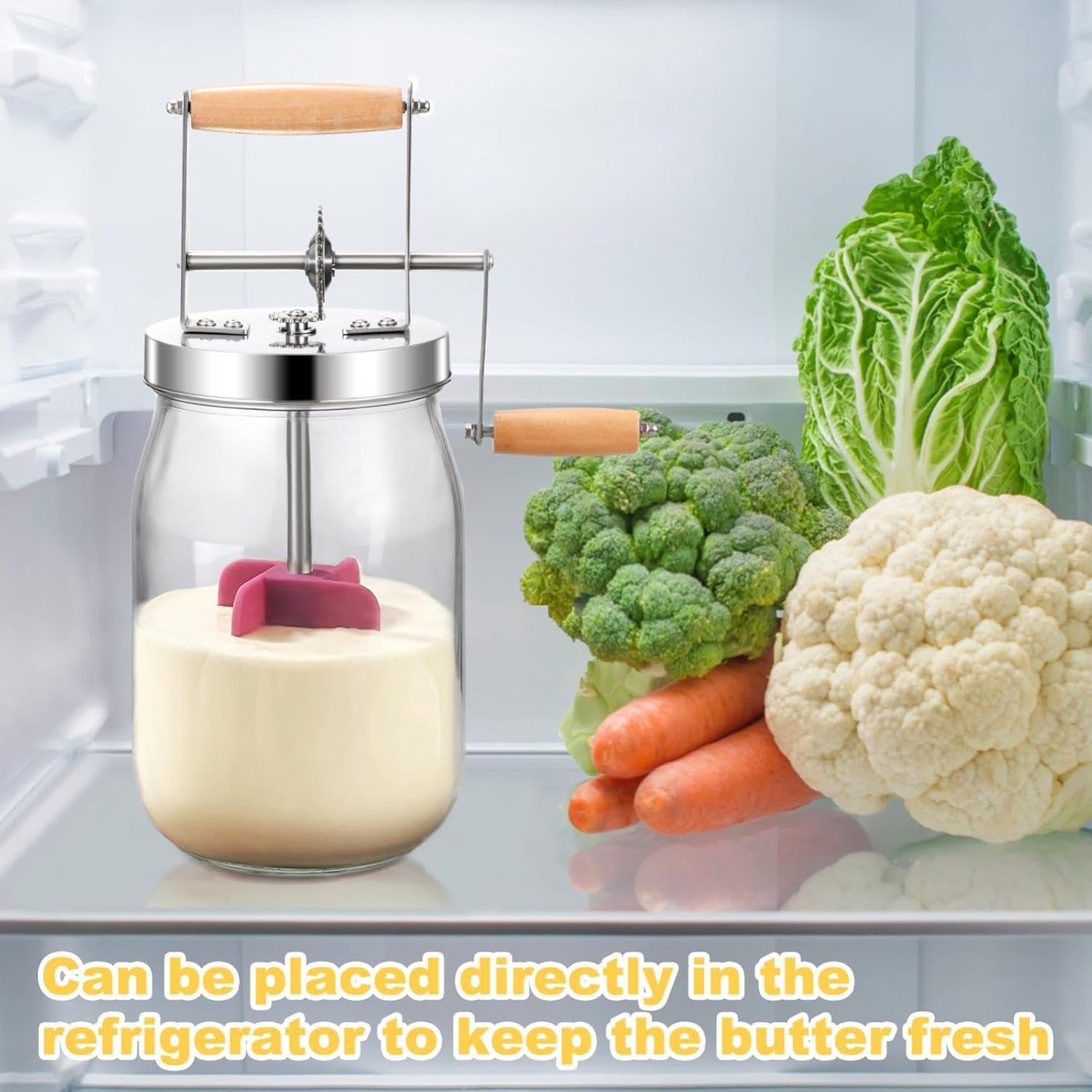 Description: - 【Traditional and Efficient】: This manual butter churner brings back the charm of traditional butter making while providing a simple and efficient way to churn butter at home. - 【Quality Construction】: Crafted with premium materials, this churner ensures durability and longevity. The wooden handle and sturdy gears provide a smooth and comfortable churning experience. - 【Easy to Use】: With its user friendly design, this manual butter churner is easy to operate. Simply pour cream into the jar and turn the handle to start making fresh homemade butter. - 【Choice】: Control what goes into your butter. This churner allows you to taste butter right in your kitchen, contributing to a healthier lifestyle. - 【Educational and Fun】: Not only does this churner provide delicious results, but it also serves as an educational tool for children, teaching them about the traditional methods of food . It's a fun and practical addition to any kitchen.Specification: - Material:Glass, Stainless Steel, Wood, SiliconeSize Chart:Capacity:1500ml/51.25flozPackage Includes:1 Hand Crank Butter Churner2 Paddles1 Recipe BookNote:Please allow slightly errors 1-2cm differences due to manual measurement.