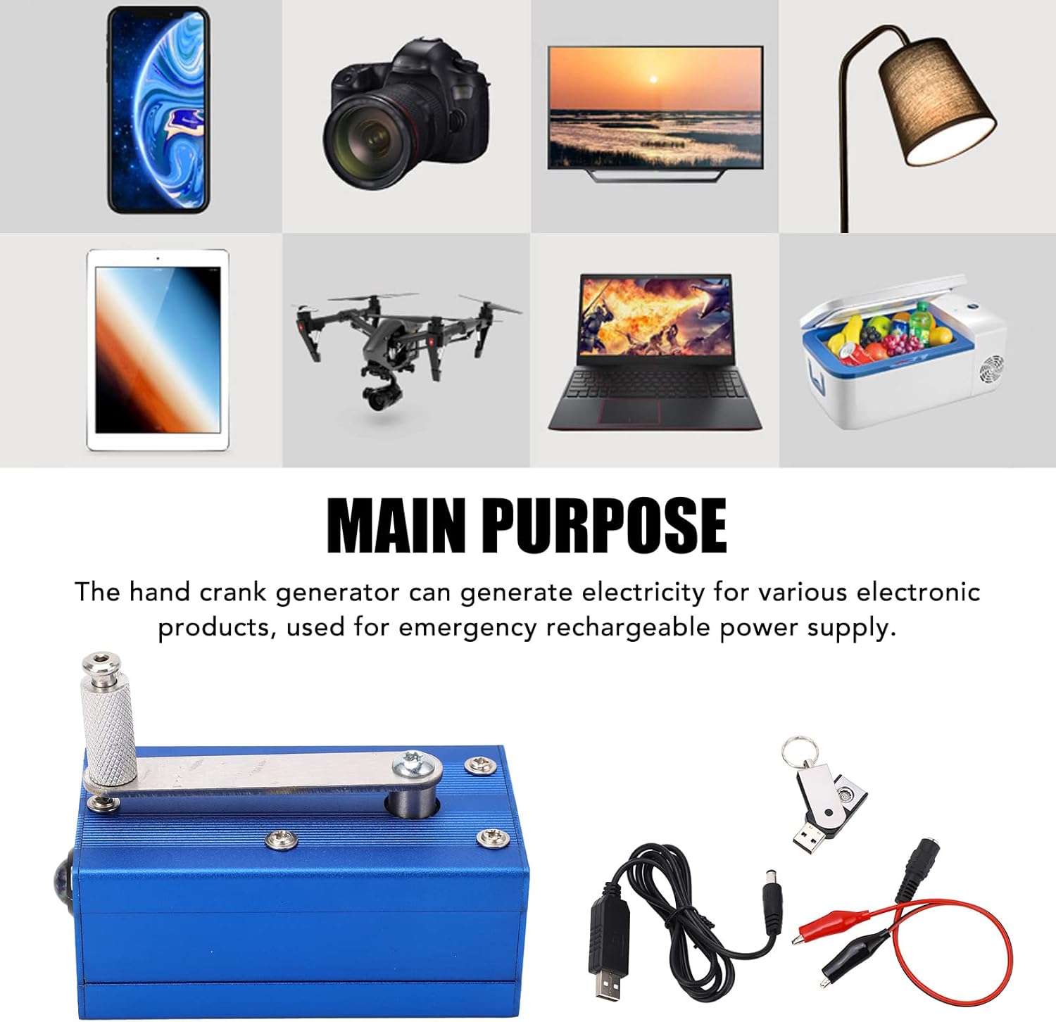 | Included Components | Hand Crank Generator, Test Clip Cable, USB Cigarette Lighter, Voltage Conversion Line |