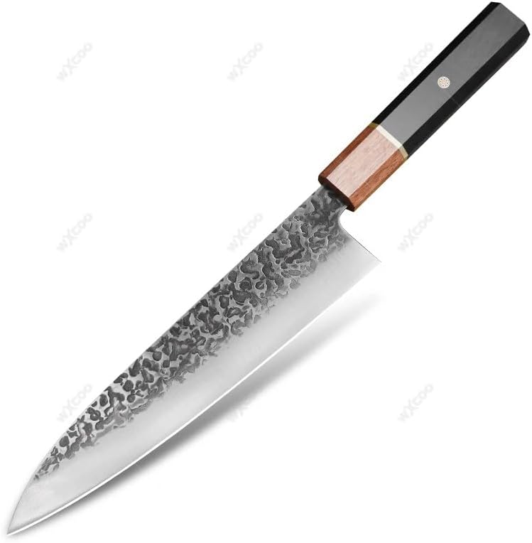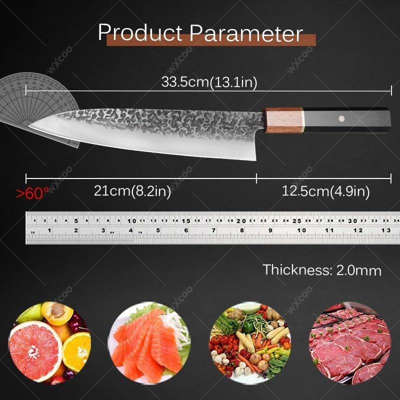With a strong traditional Japanese style, the meat cleaver is hand-forged from high-quality 5Cr15 stainless steel, combined with a natural ebony handle, providing sharpness, durability and a firm grip when used. The thin blade of only 2mm helps to cut meat, vegetables and fruits easily, accurately and quickly. Specifications: Blade material: 5Cr15 stainless steel Handle: High-quality ebony Total length: 33.5cm Blade length: 21cm Blade thickness: 2mm Weight: 180g Packaging options: 1 x Knife (with box) or 1 x Knife (without box) Application: Suitable for chopping meat, cutting vegetables and fruits, used in families, restaurants or as a luxurious gift.
