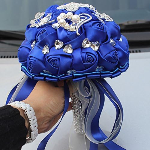 Description - Package included:1 x Wedding Bride Bouquet -Material - Rhinestone brooch, crystal, satin ribbon